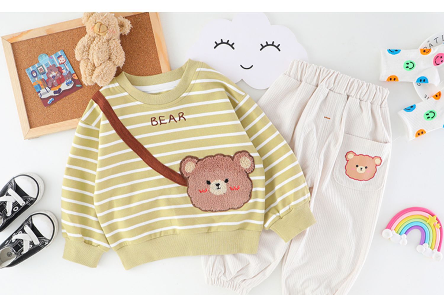 • 베어 사첼 스트라이프 봄과 가을 세트 라이트 그린