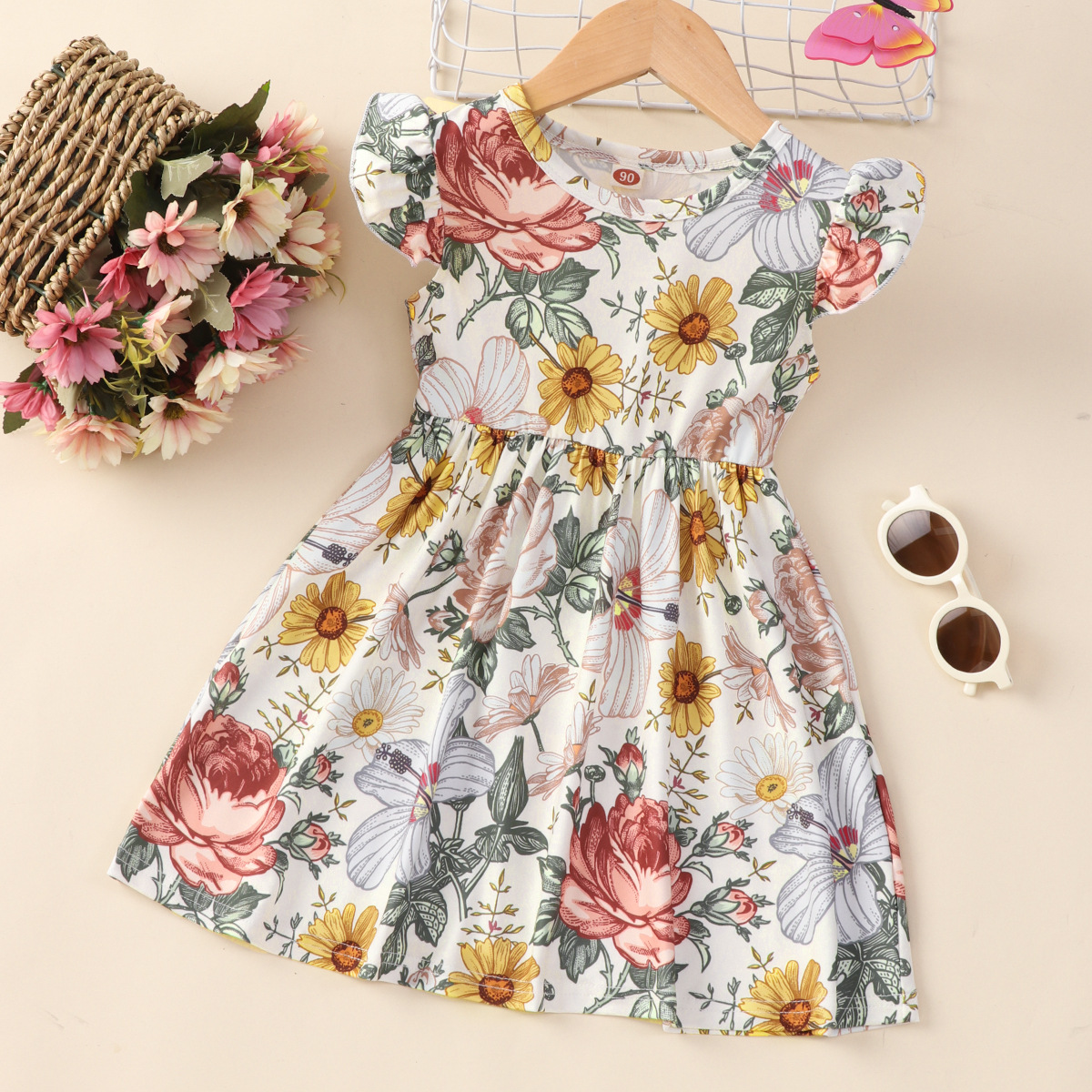 새로운 스타일의 작은 어린이 플라잉 슬리브 드레스 어린이 드레스 소녀 공주 드레스스토어 가기