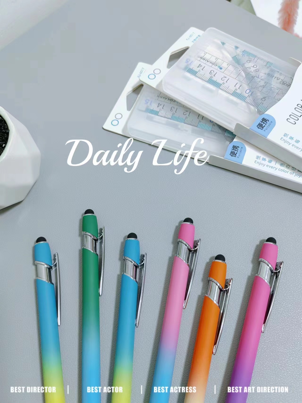 스프레이 그라디언트 컬러 레인보우 구름 DINGZHI 인쇄 레이저 레이저 로고 반금속 볼펜