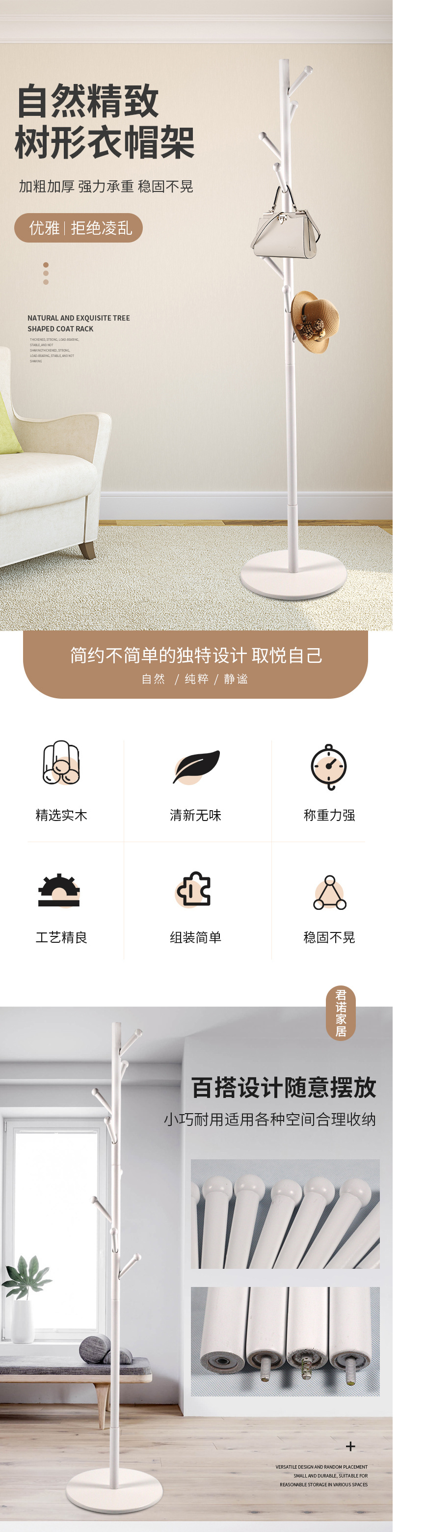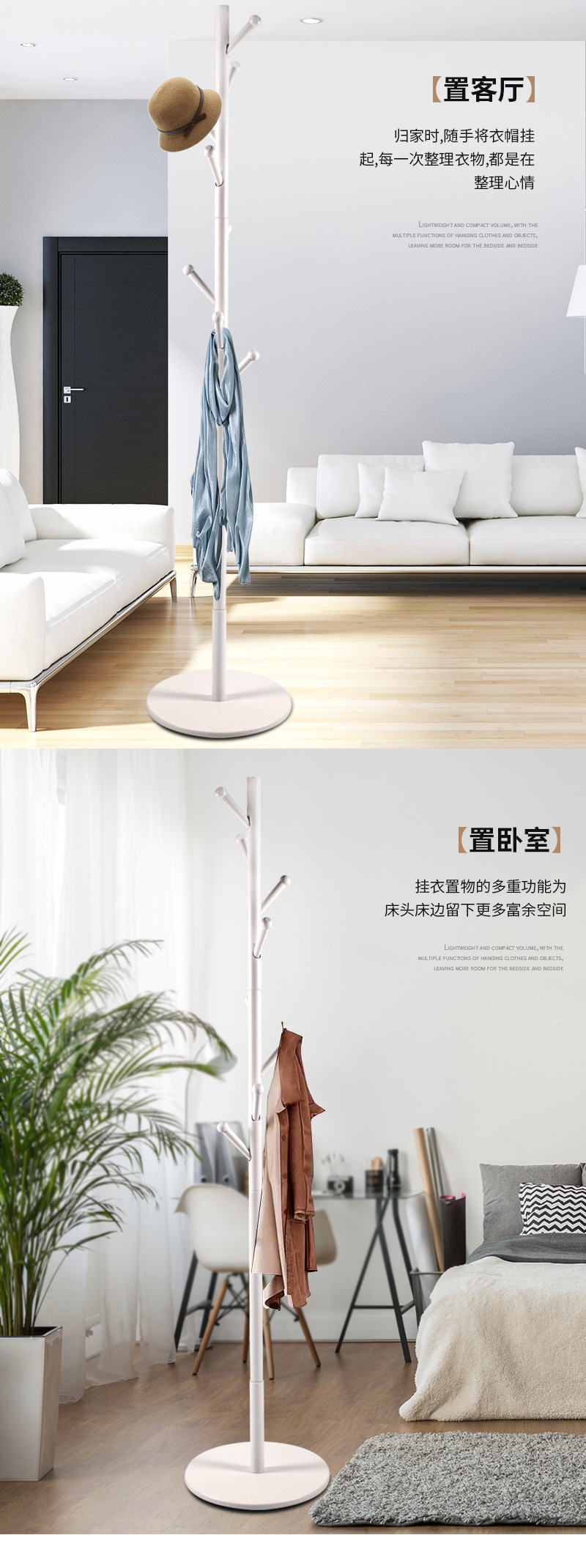 원목 옷걸이 화이트 심플 거실 침실 플로어 스탠딩 옷걸이 너도밤나무 수납 이동식 옷걸이 심플 디자인