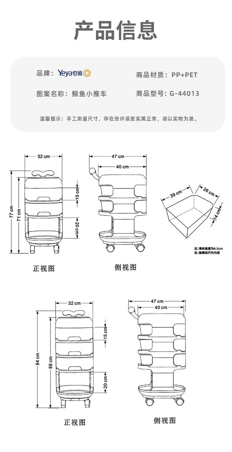 아기 제품 보관 랙 고래 트롤리 바닥 다층 크리에이티브 침대 옆 모바일 스낵 보관 랙 pp