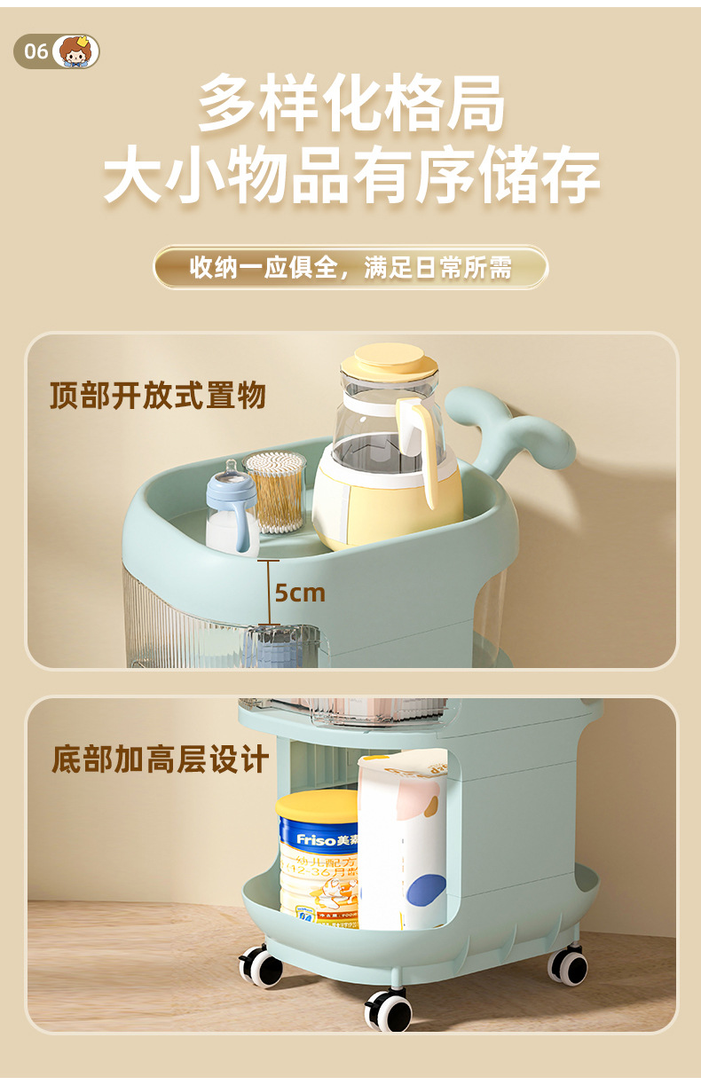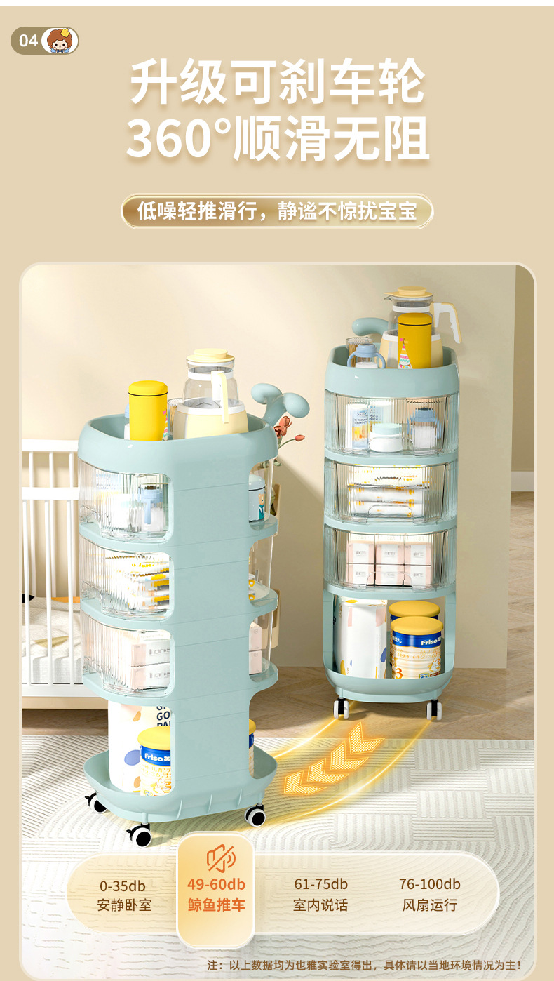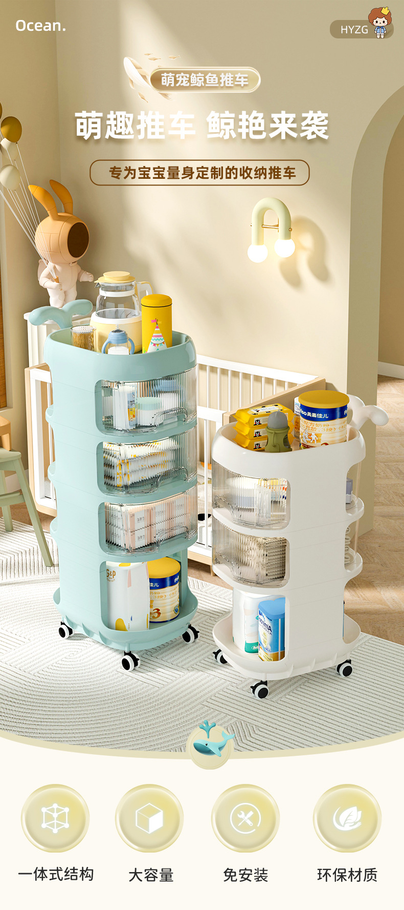 아기 제품 보관 랙 고래 트롤리 바닥 다층 크리에이티브 침대 옆 모바일 스낵 보관 랙 pp스토어 가기