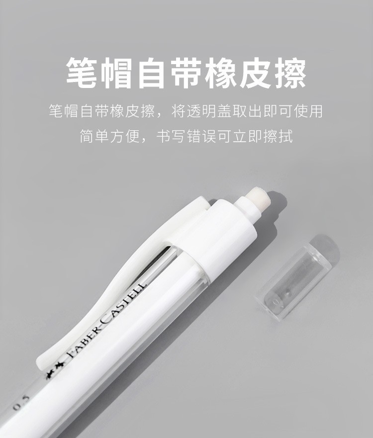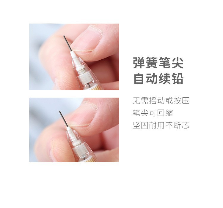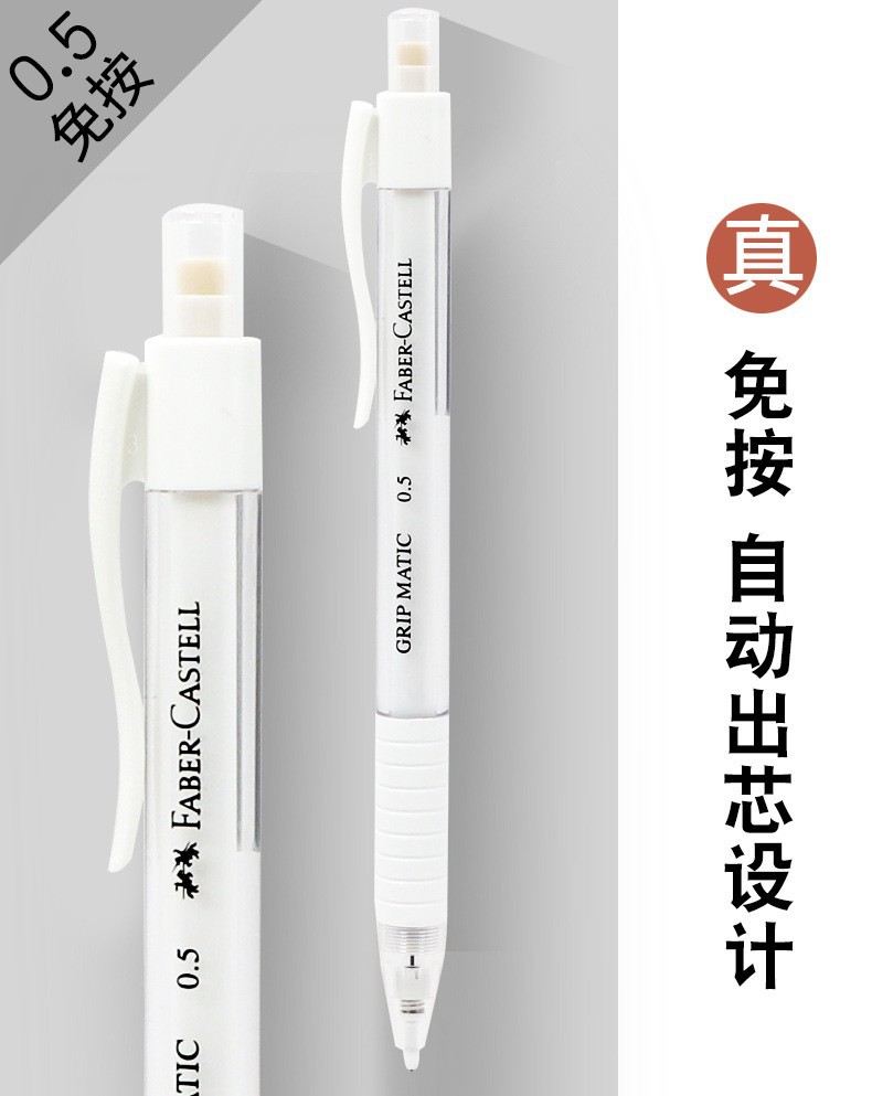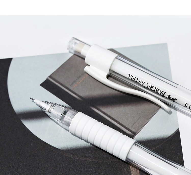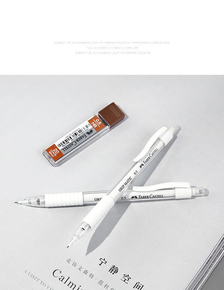 Faberge 1338 화이트 샤프 펜슬 0.5mm 프레스 프리 자동 코어 아웃 투명 학생 활동 펜슬스토어 가기