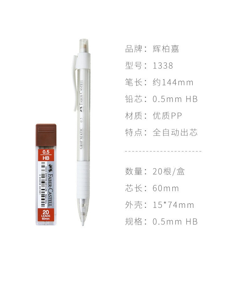 Faberge 1338 화이트 샤프 펜슬 0.5mm 프레스 프리 자동 코어 아웃 투명 학생 활동 펜슬