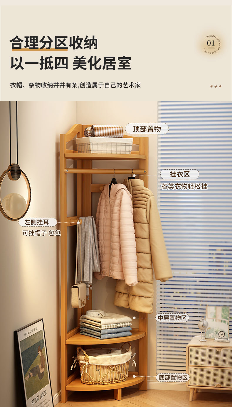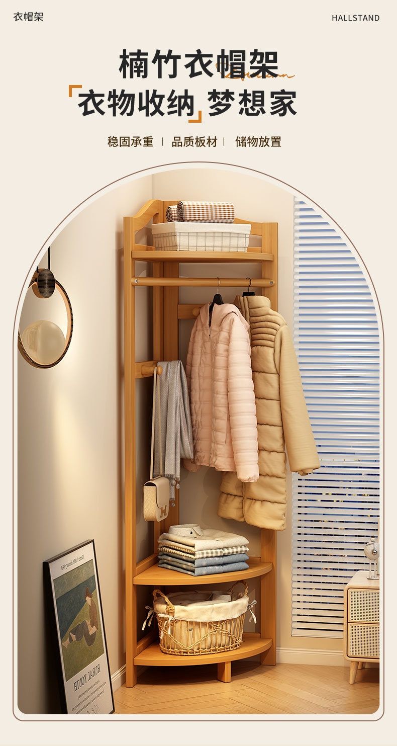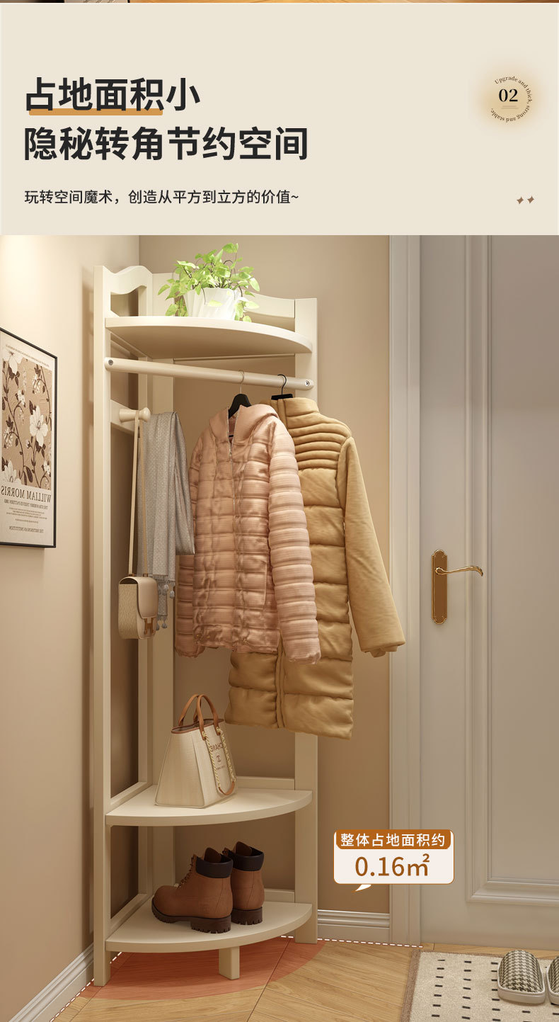 코너 코트 랙 바닥에 서있는 가정용 침실 단단한 나무 방 문 뒷 행거 복도 보관 랙 간단한 옷 랙