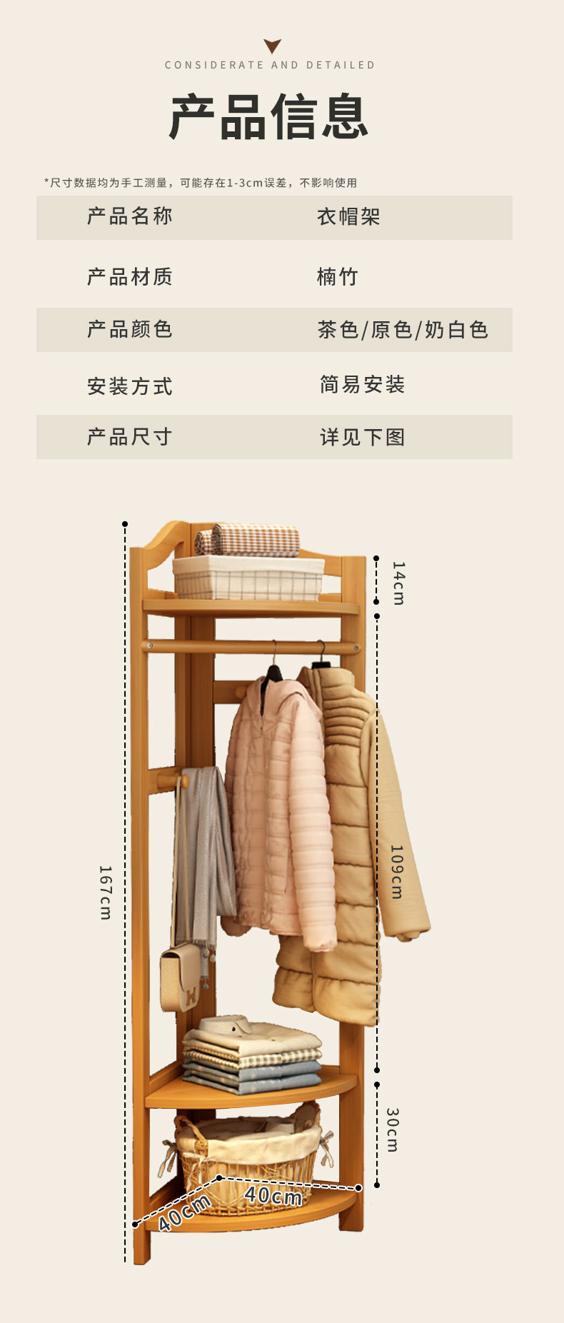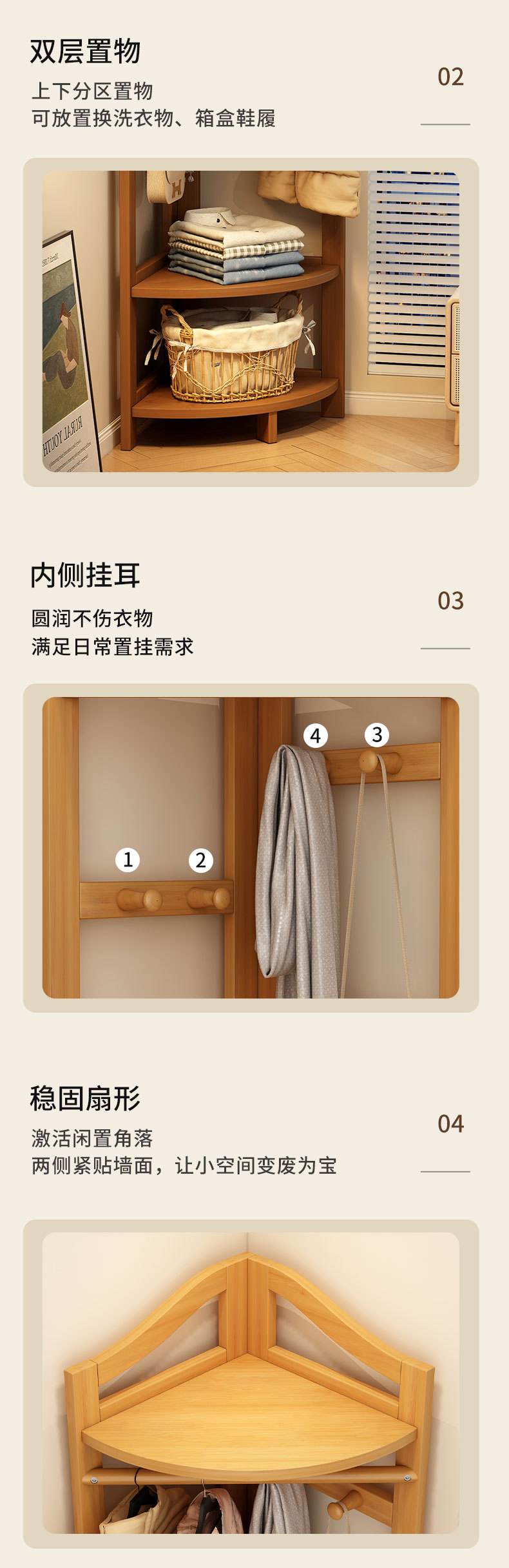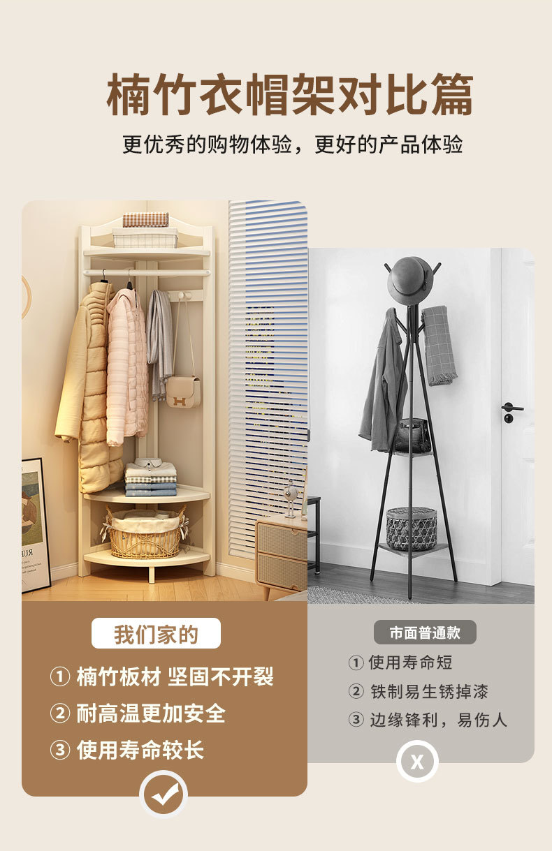 코너 코트 랙 바닥에 서있는 가정용 침실 단단한 나무 방 문 뒷 행거 복도 보관 랙 간단한 옷 랙