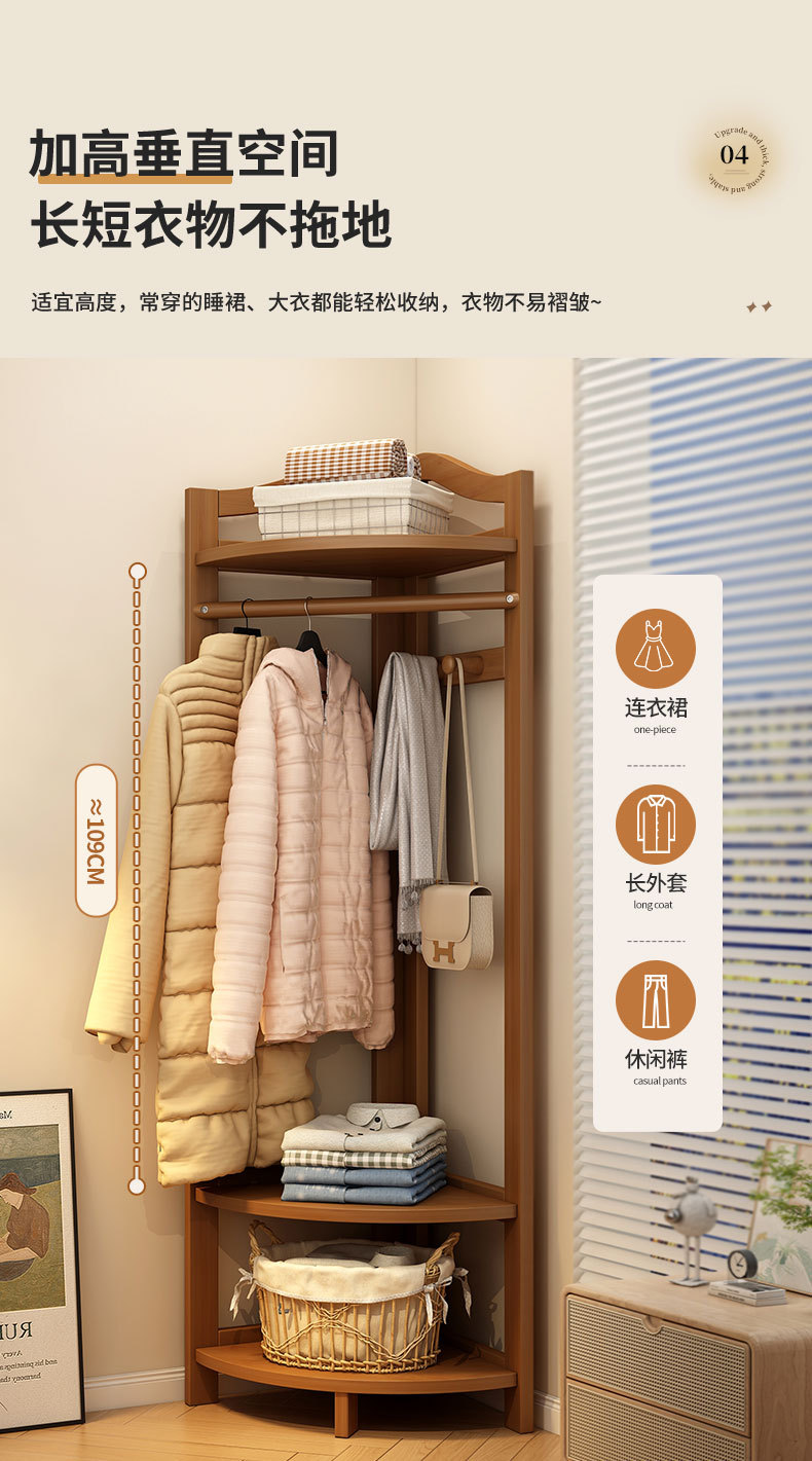 코너 코트 랙 바닥에 서있는 가정용 침실 단단한 나무 방 문 뒷 행거 복도 보관 랙 간단한 옷 랙스토어 가기