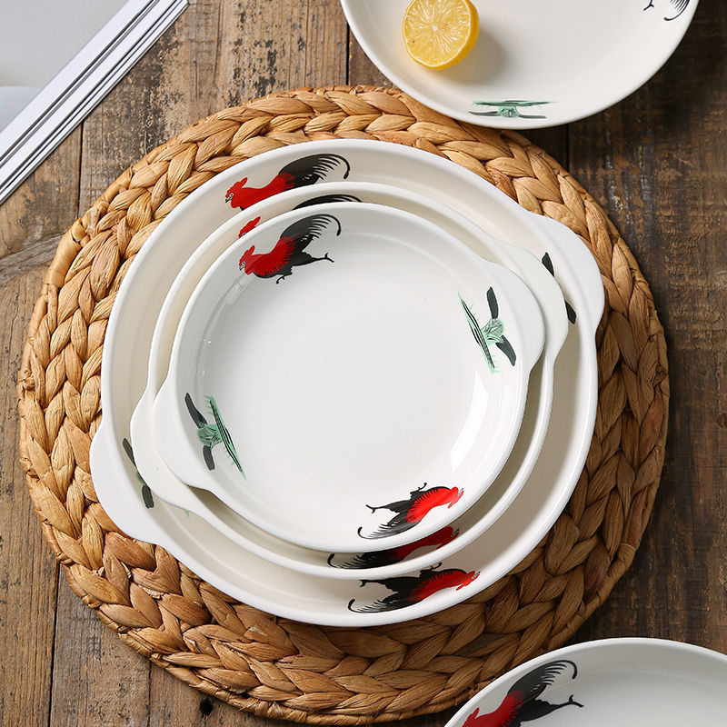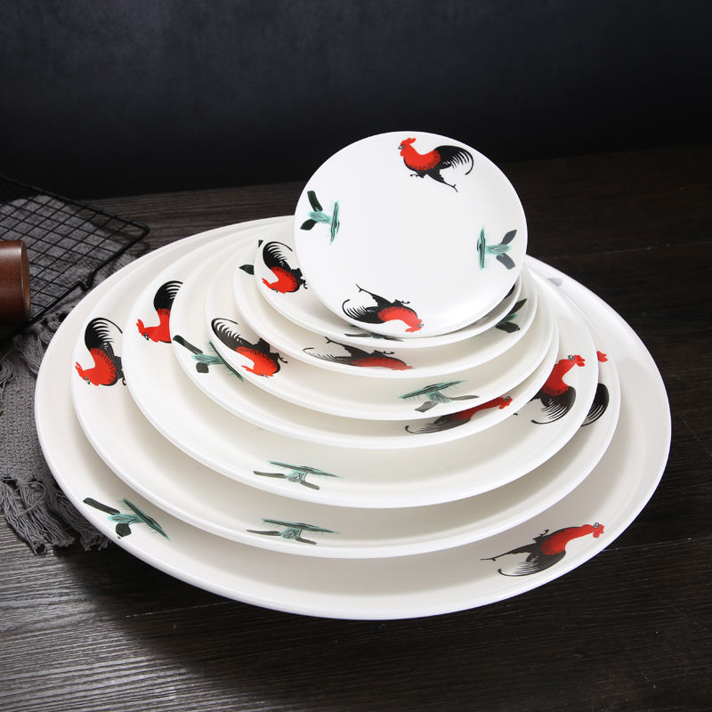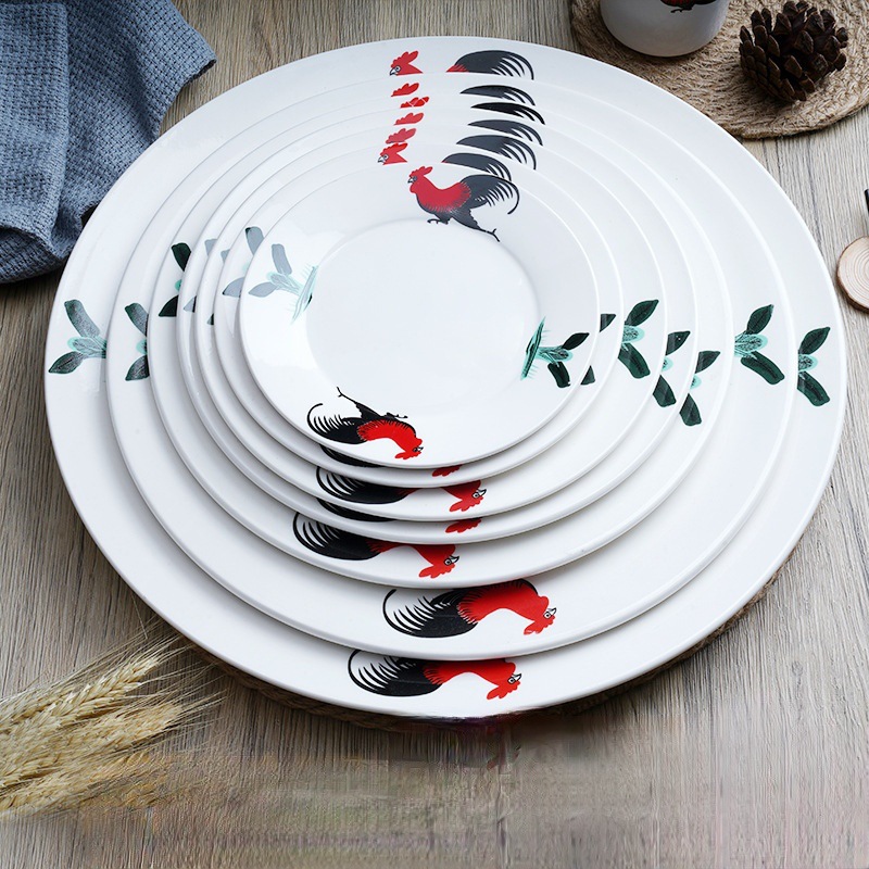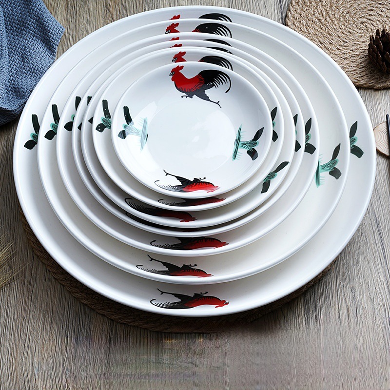 구식 호텔 레스토랑 세라믹 치킨 얕은 접시 플랫 플레이트 과일 플레이트 전복 플레이트 바이 노럴 플레이트 디스크 수프 플레이트 수탉 접시