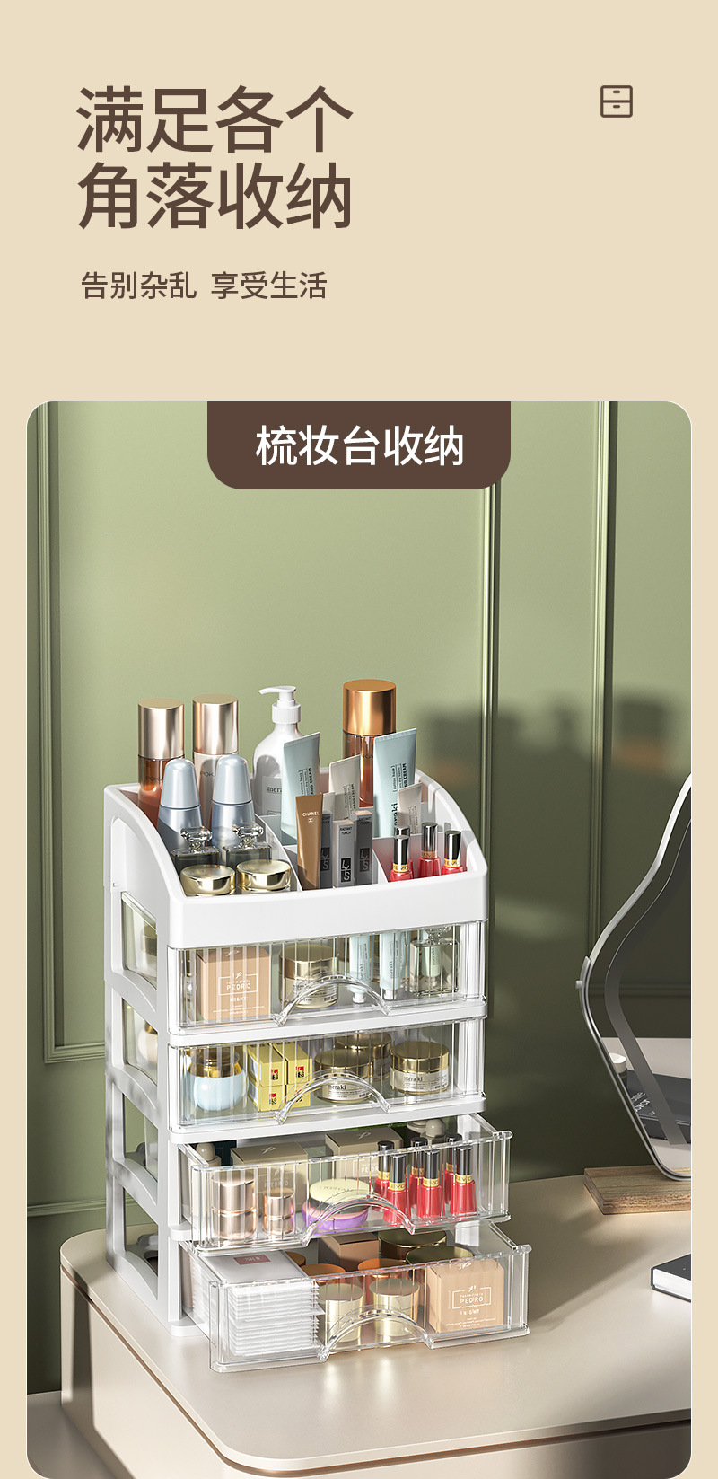 크라운 그리드 서랍형 데스크탑 스토리지 캐비닛 세트 화장품 보석 마무리 상자 스토리지 캐비닛 소스 공장