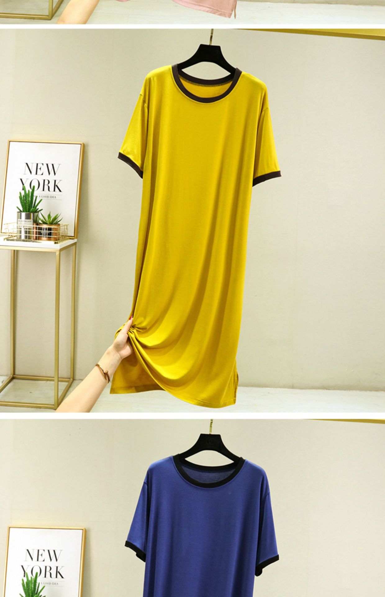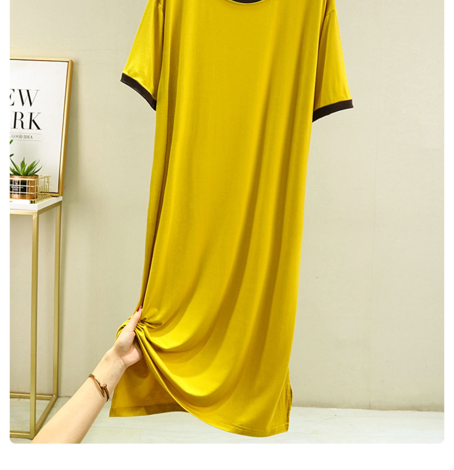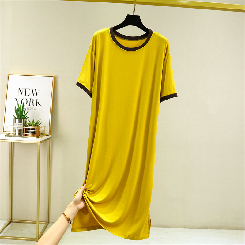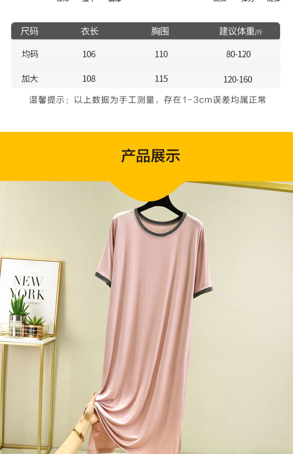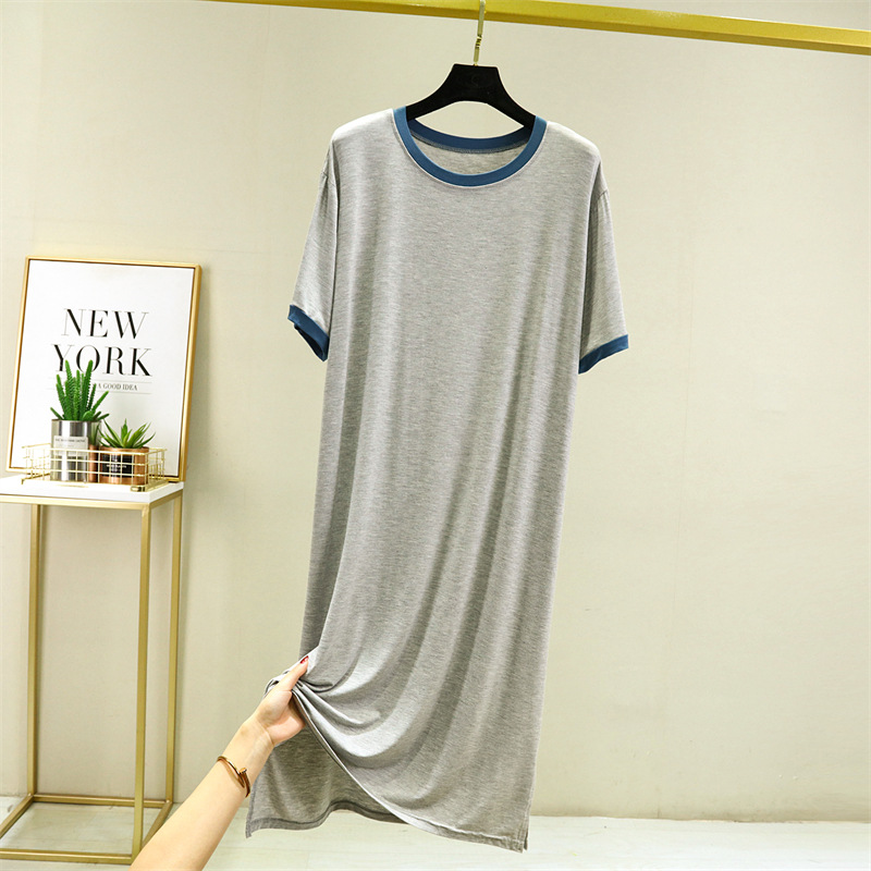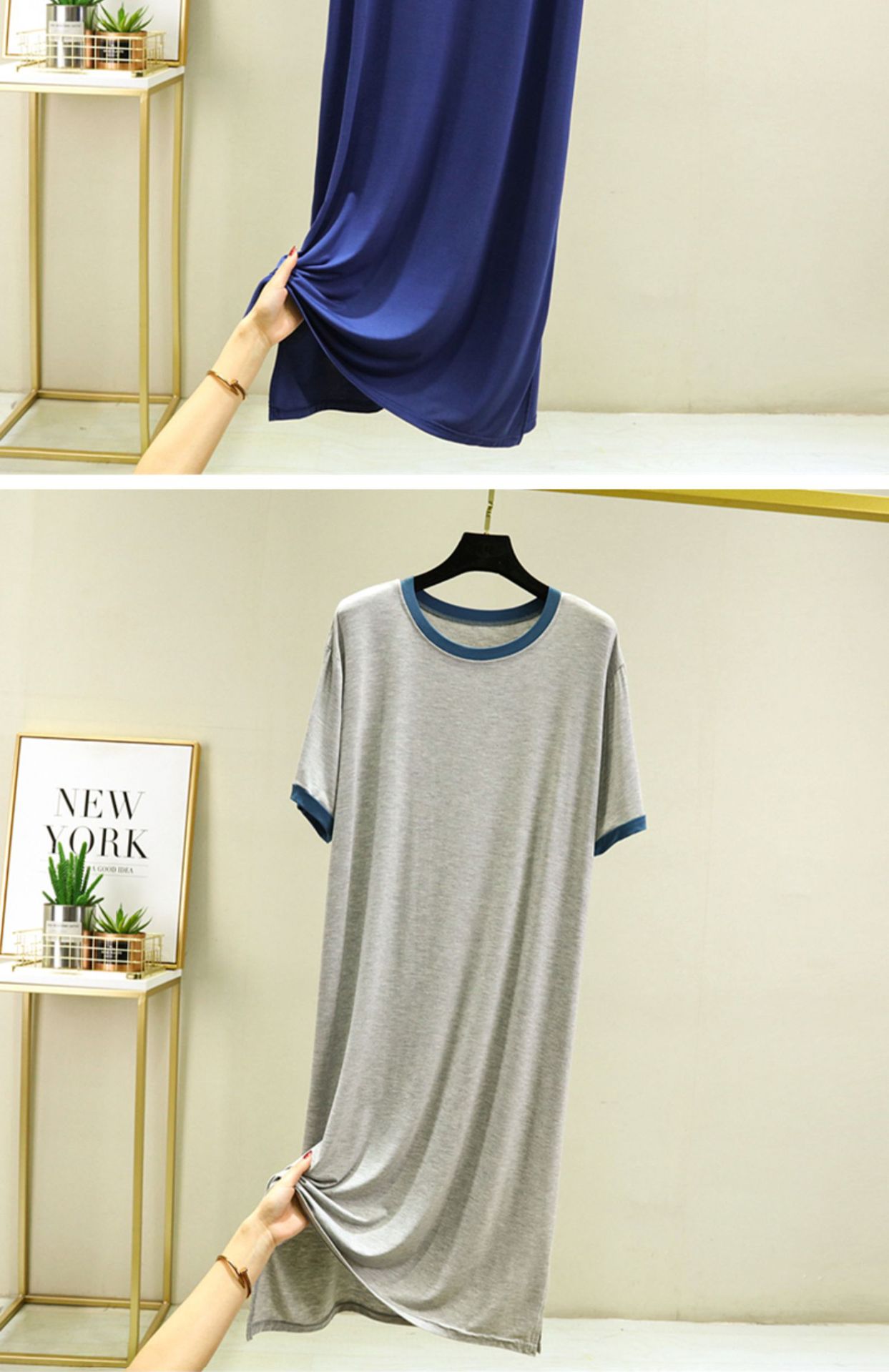 여자의 모달 반팔 원피스 여름 플러스 사이즈 느슨한 간단한 잠옷 가정 옷 모든 일치 롱 스커트 베이스 스커트스토어 가기