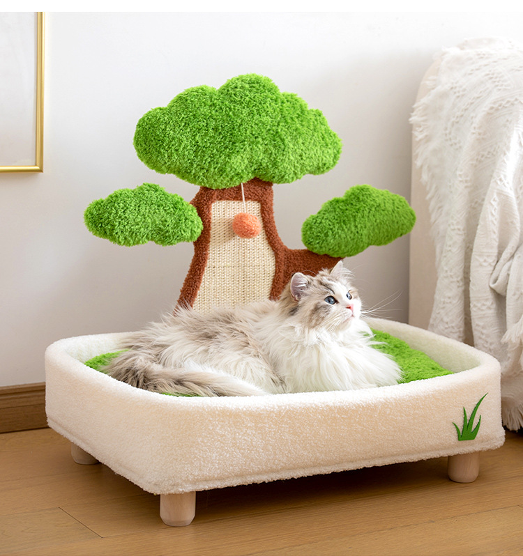 고양이 집 겸 고양이 스크래치 보드, 사계절 사용 가능, 겨울에도 따뜻한 사자수 패드, 내구성 및 긁힘 방지, 탈부착 및 세탁 가능, 소형견 집스토어 가기