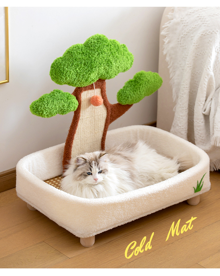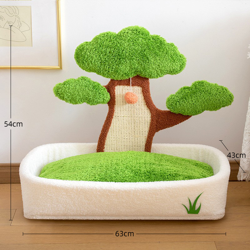 고양이 집 겸 고양이 스크래치 보드, 사계절 사용 가능, 겨울에도 따뜻한 사자수 패드, 내구성 및 긁힘 방지, 탈부착 및 세탁 가능, 소형견 집