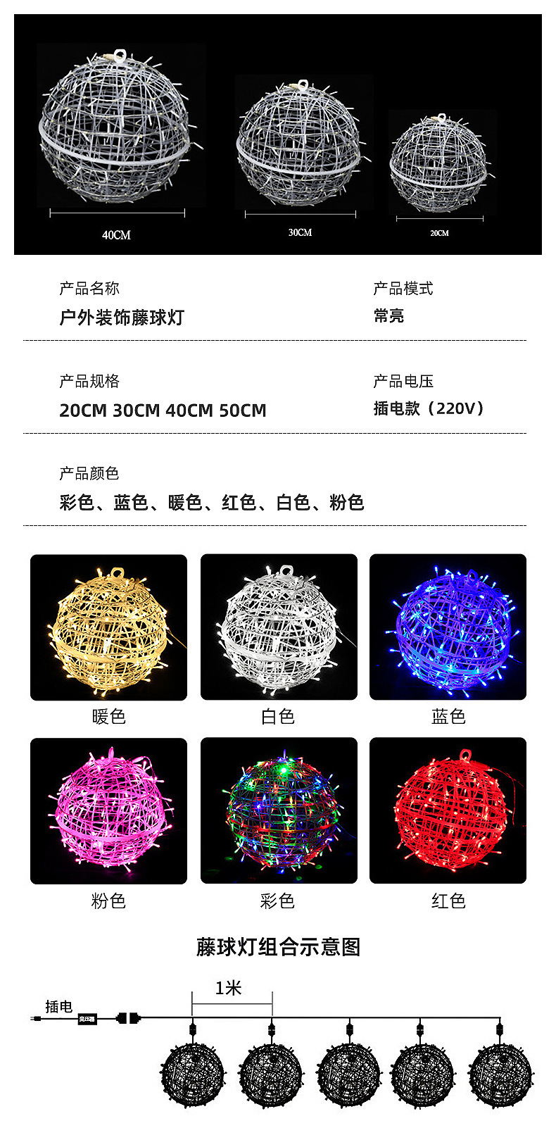 Led 꼬투리 공 빛 야외 방수 둥근 공 문자열 빛 거리 안뜰 풍경 교수형 나무 빛 축제 분위기 장식 조명스토어 가기