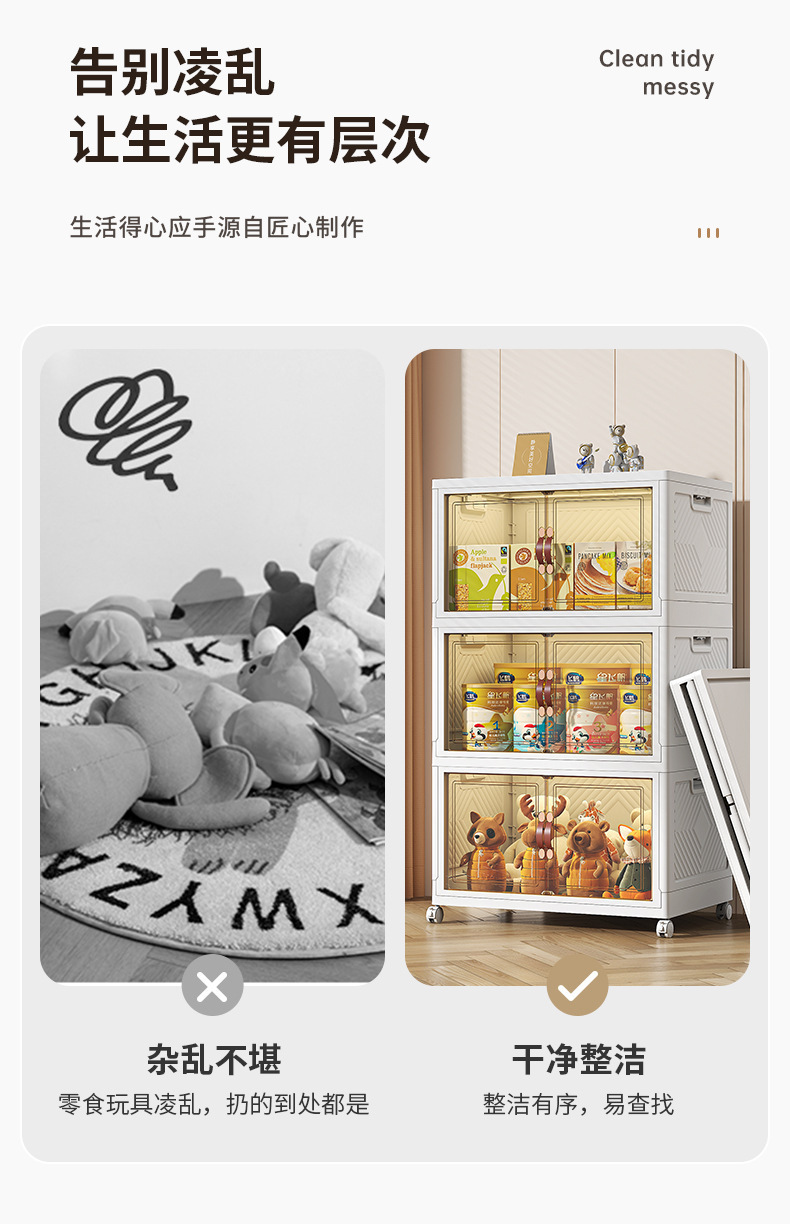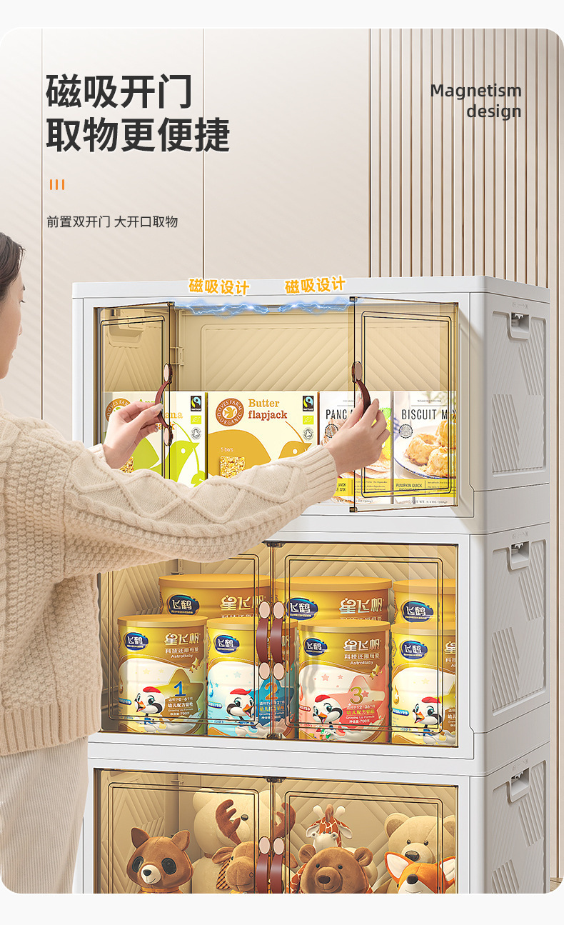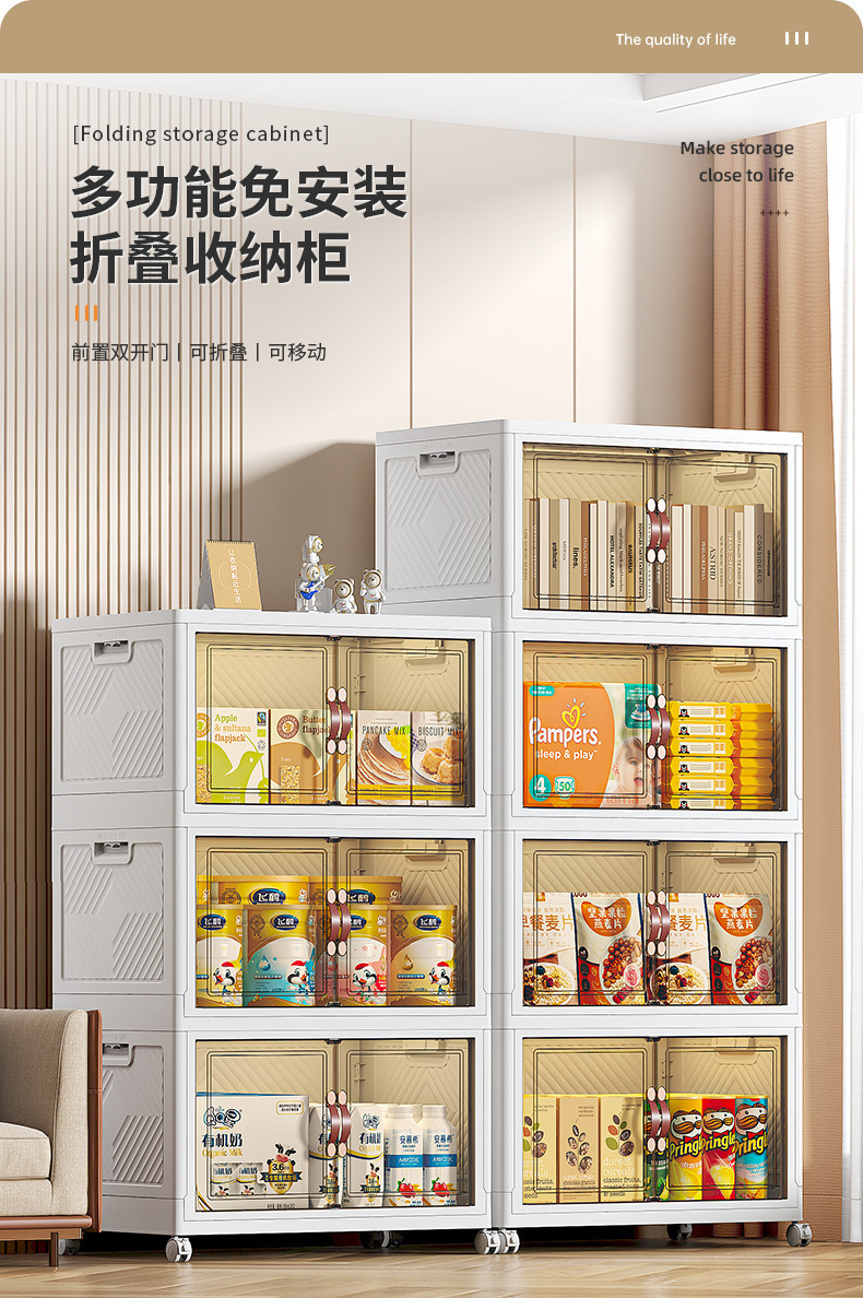 도서 대용량 의류 가정용 이동 접이식 수납 캐비닛 도매용 설치 무료 잡화 양문 보관 상자스토어 가기