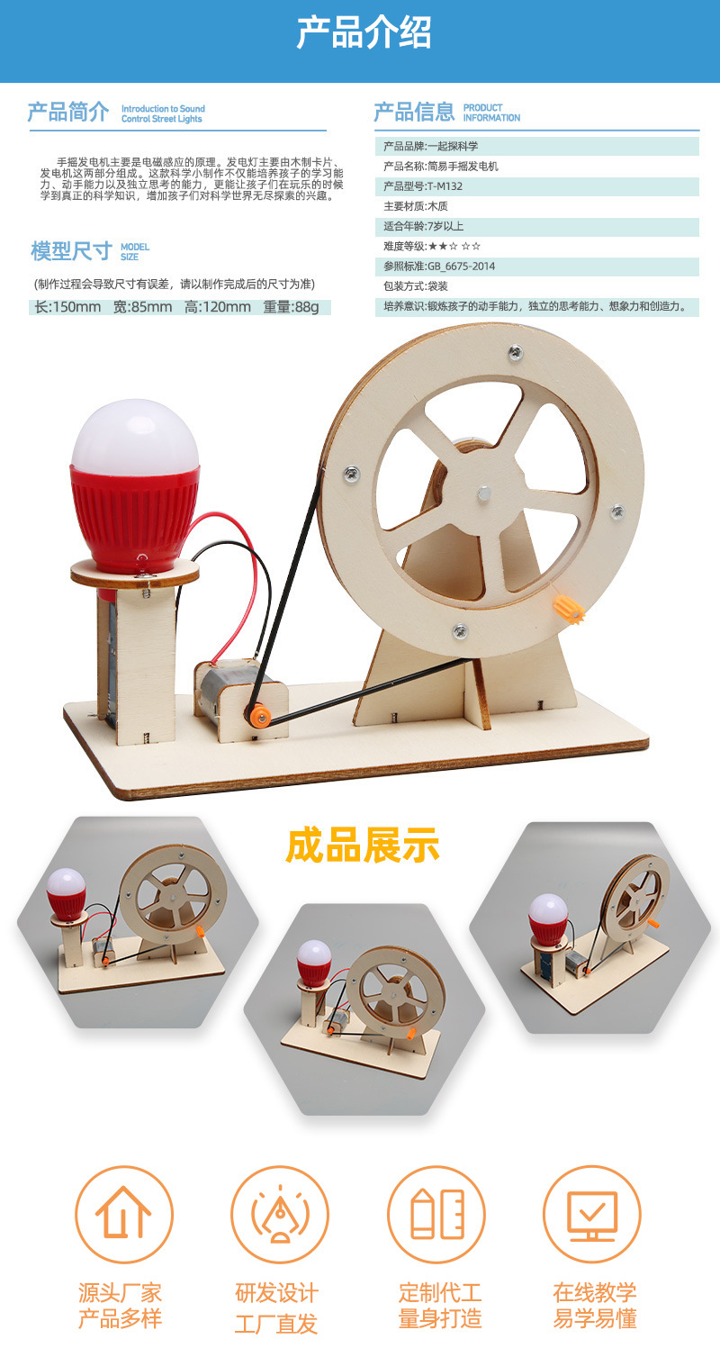 과학 실험 수동식 발전기 DIY 초등학생 과학 기술 소규모 생산 어린이 창의적 발명 DIY 재료 패키지스토어 가기