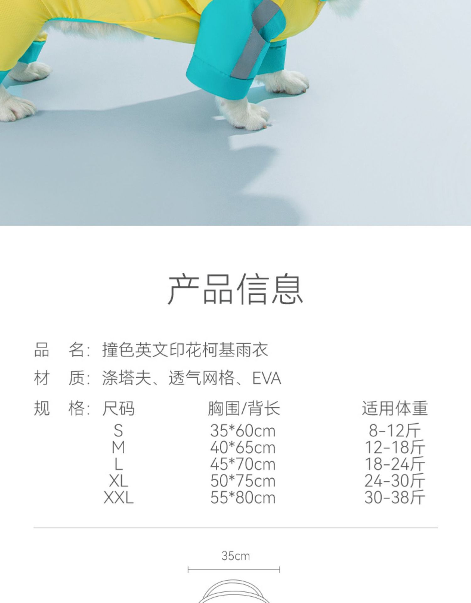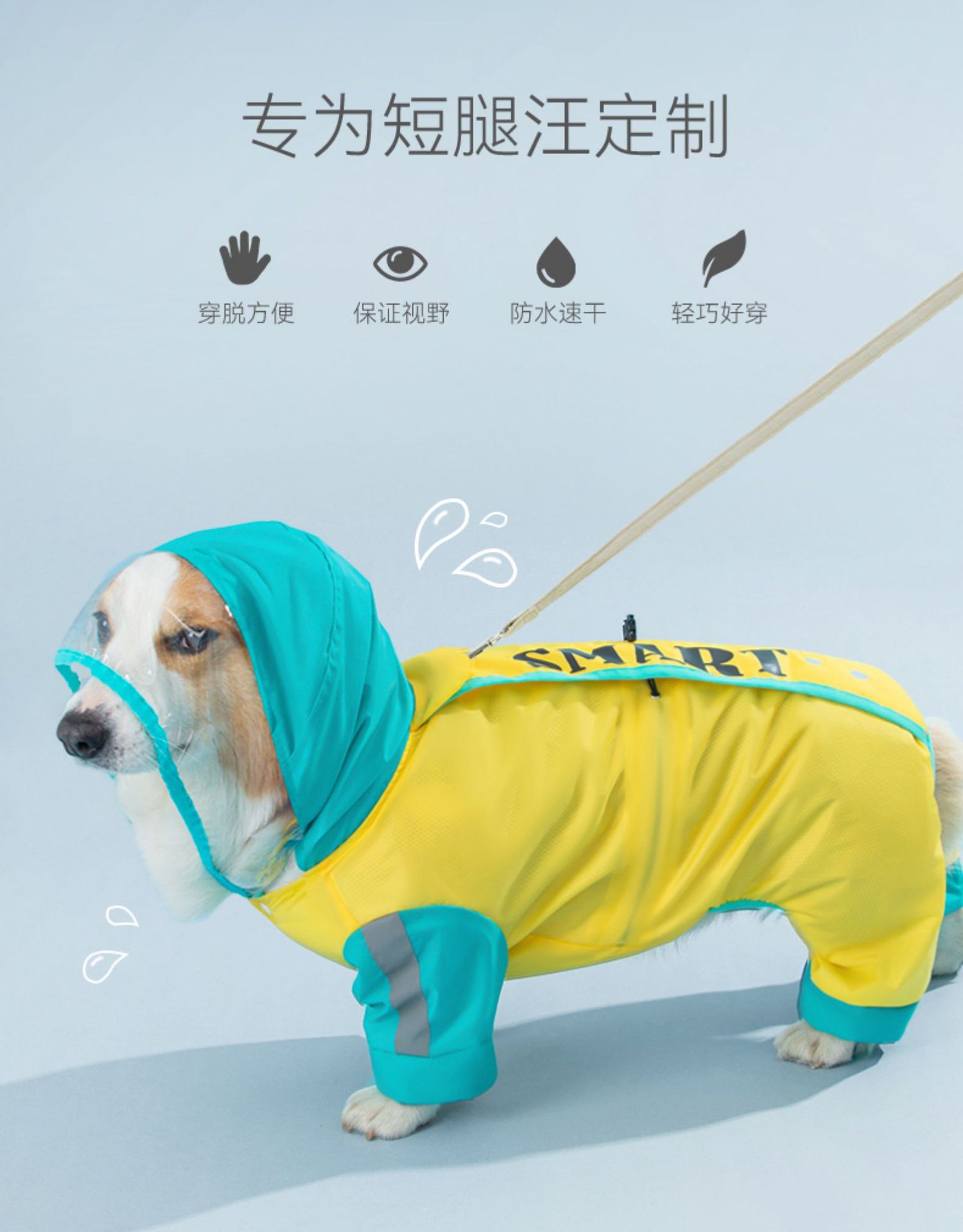 대비 색상 인쇄 코기 비옷 네 다리 방수 모든 항목을 포함하는 프렌치 불독 중형 개 애완 동물 강아지 비오는 날 옷