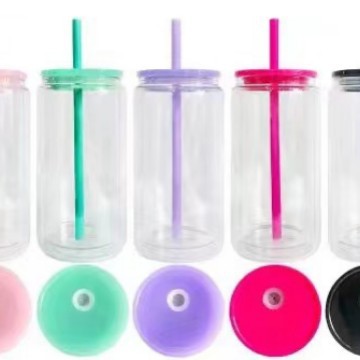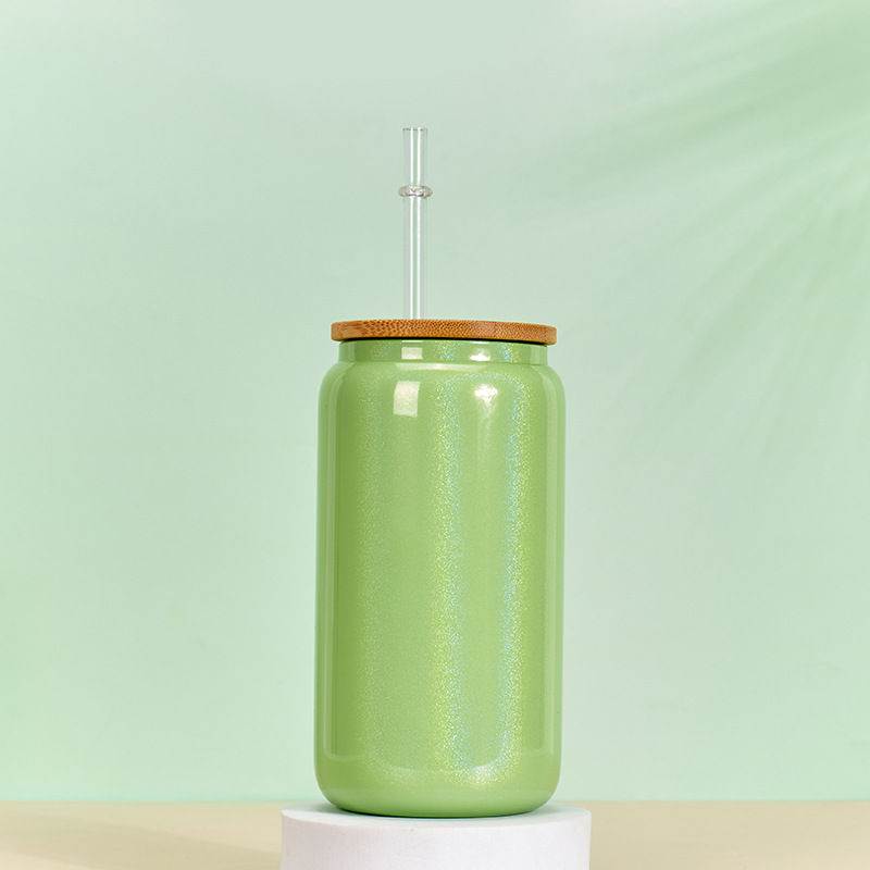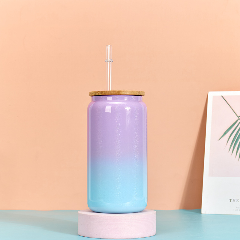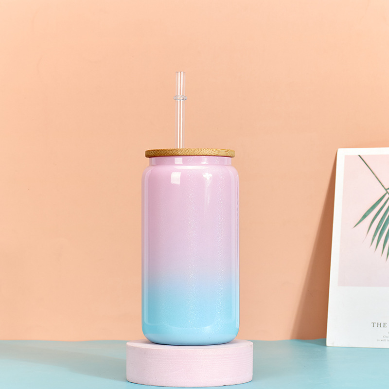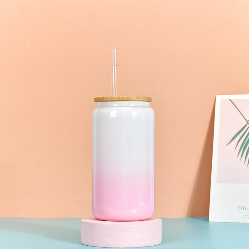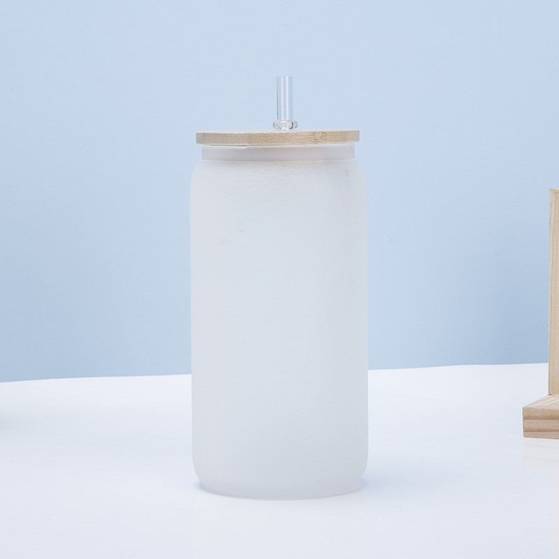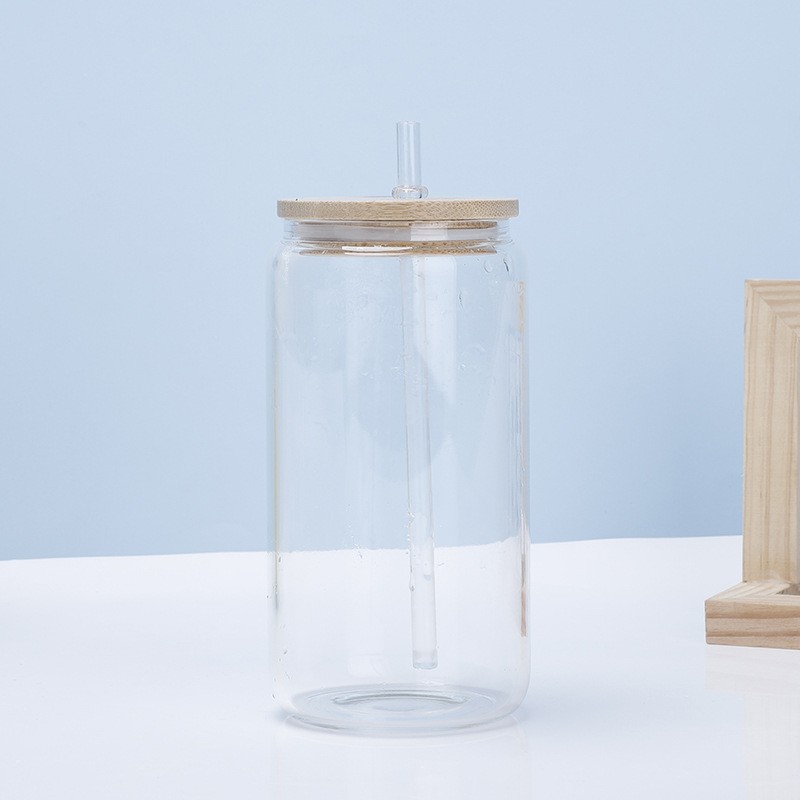 승화 12oz16oz 유리 컵 흡입 튜브 컵 콜라 컵 메이슨 컵 대나무와 나무 뚜껑 컵 재고 공장 도매스토어 가기