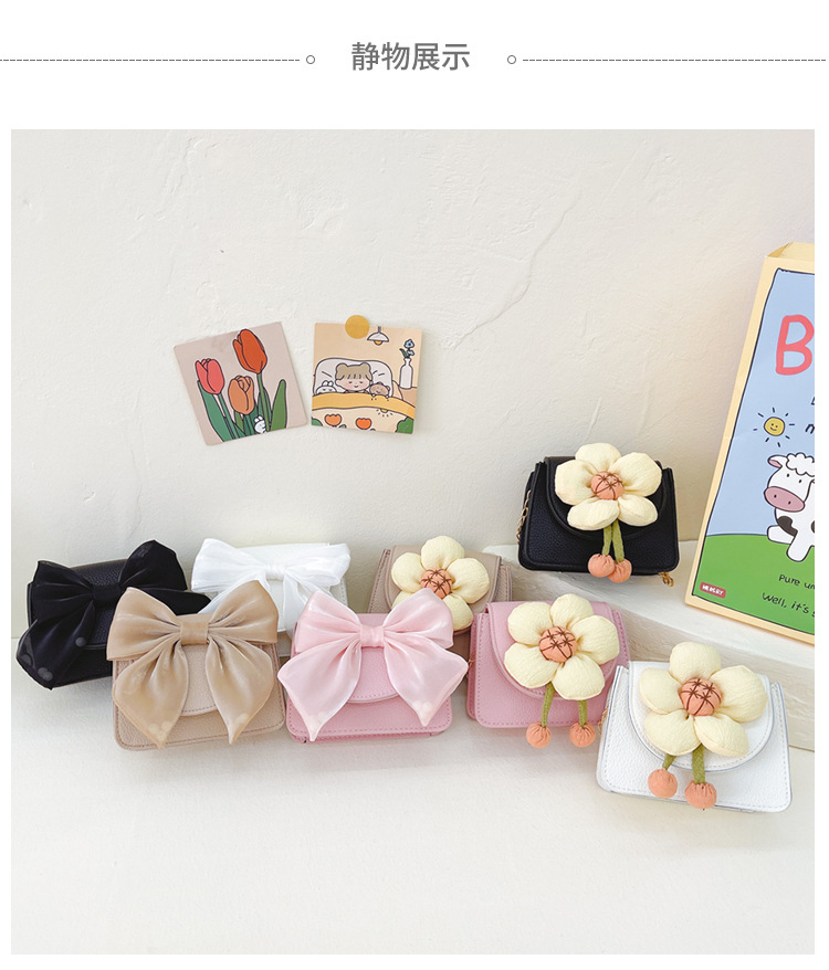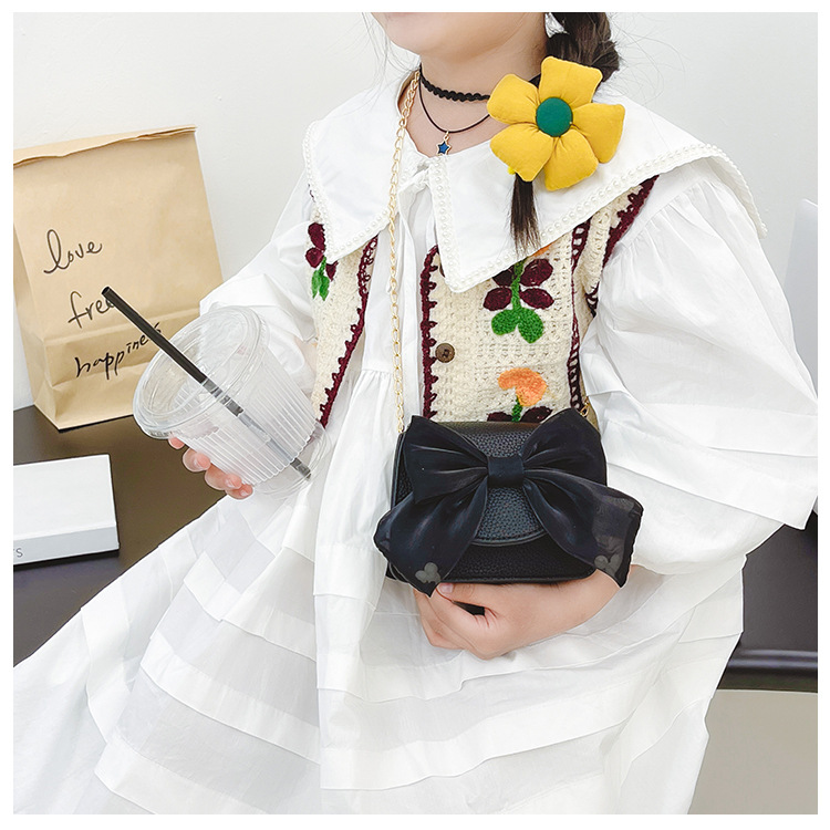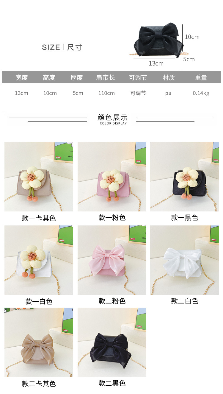 국경 귀여운 어린 소녀 어린이 가방 패션 새로운 활 꽃 어깨 메신저 가방 체인 동전 지갑스토어 가기