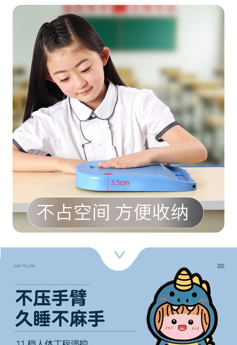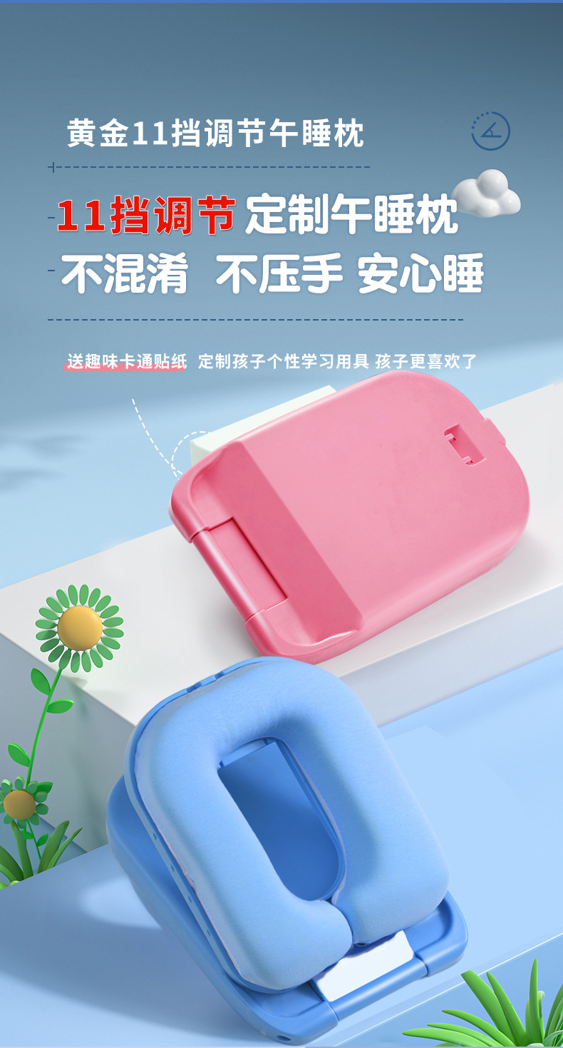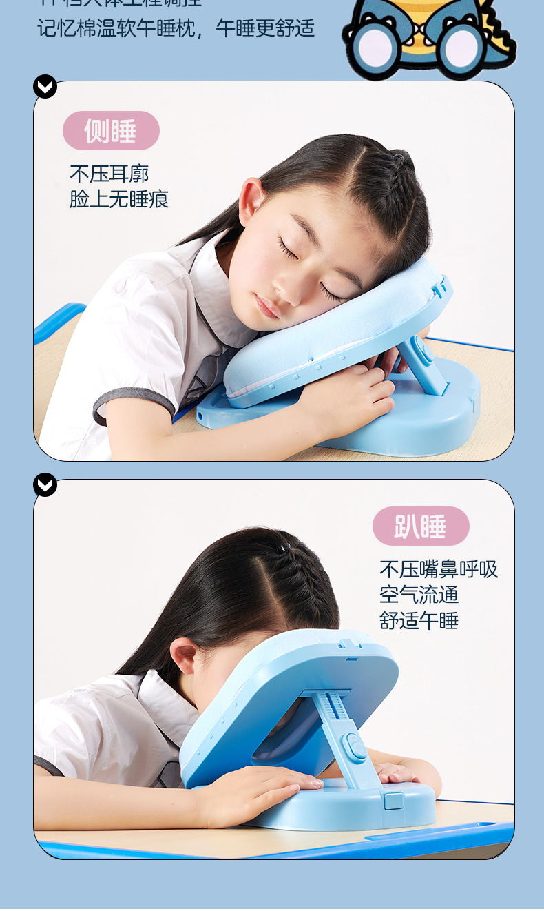 초등학생을위한 조절 가능한 높이 낮잠 베개 테이블 어린이 수면 교실 테이블 수면 베개 학생스토어 가기