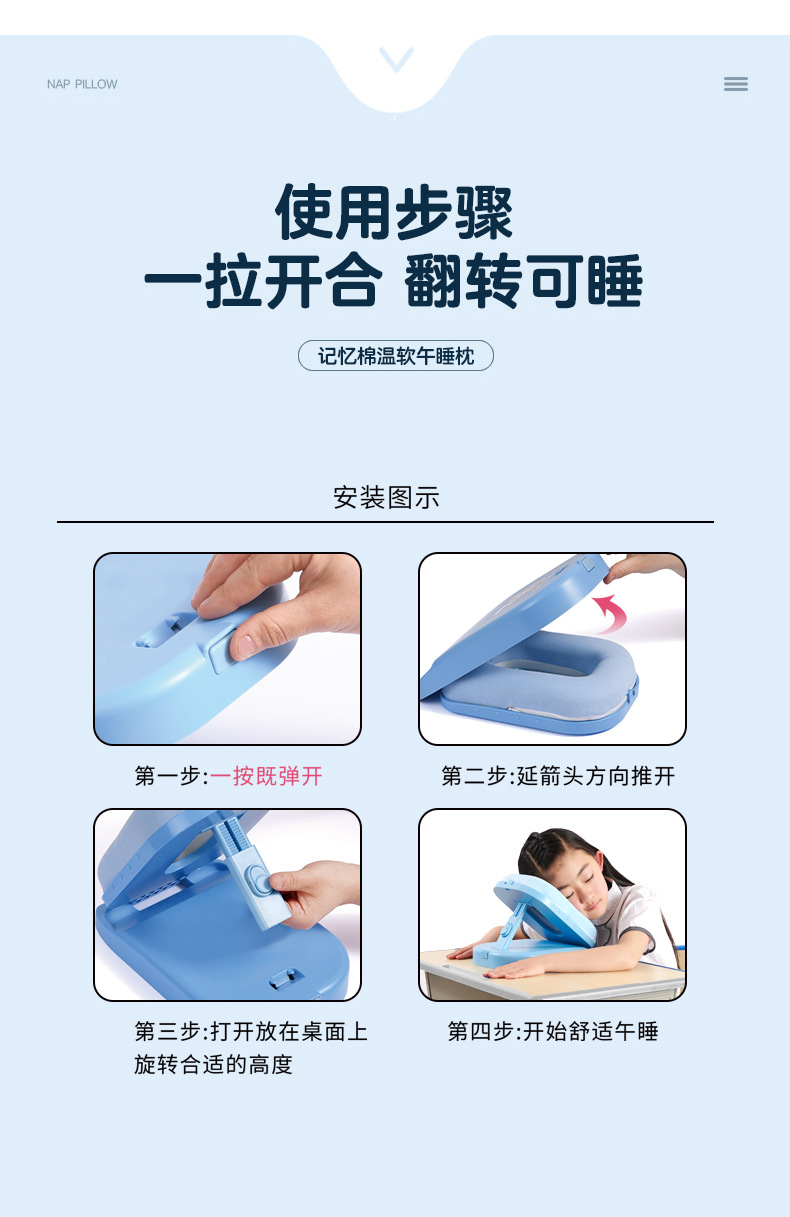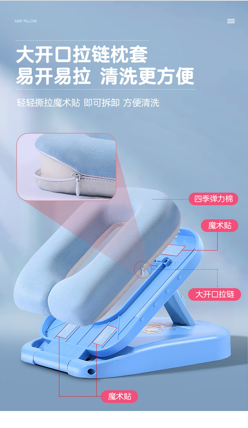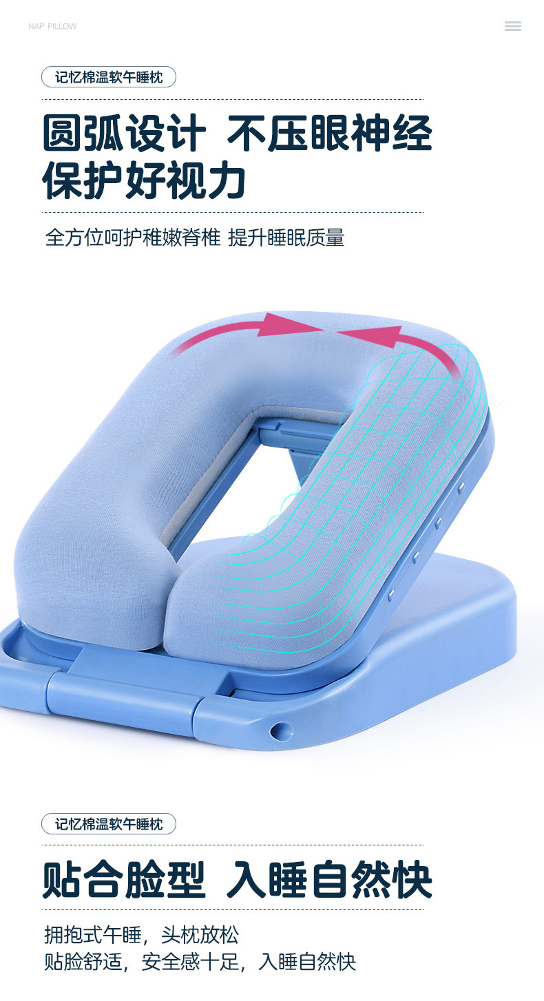 초등학생을위한 조절 가능한 높이 낮잠 베개 테이블 어린이 수면 교실 테이블 수면 베개 학생스토어 가기