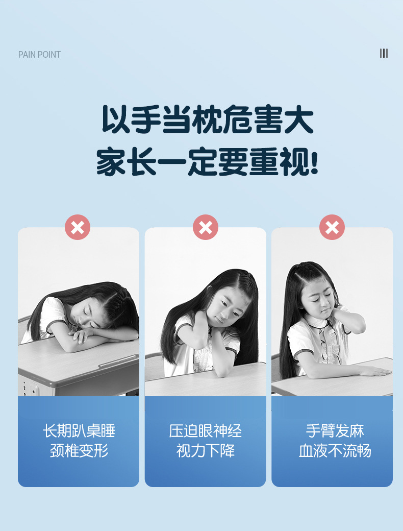 초등학생을위한 조절 가능한 높이 낮잠 베개 테이블 어린이 수면 교실 테이블 수면 베개 학생