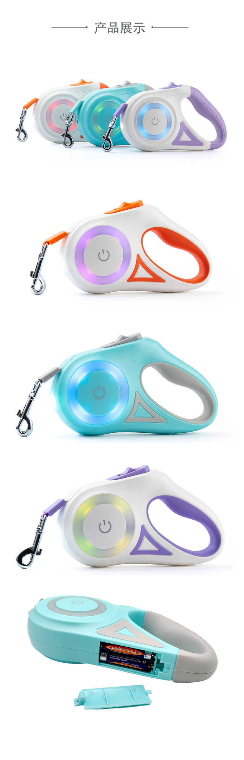 공장 직접 공급 재고 3 미터 터치 발광 자동 LED 애완 동물 가죽 끈 개 가죽 끈 가죽 끈