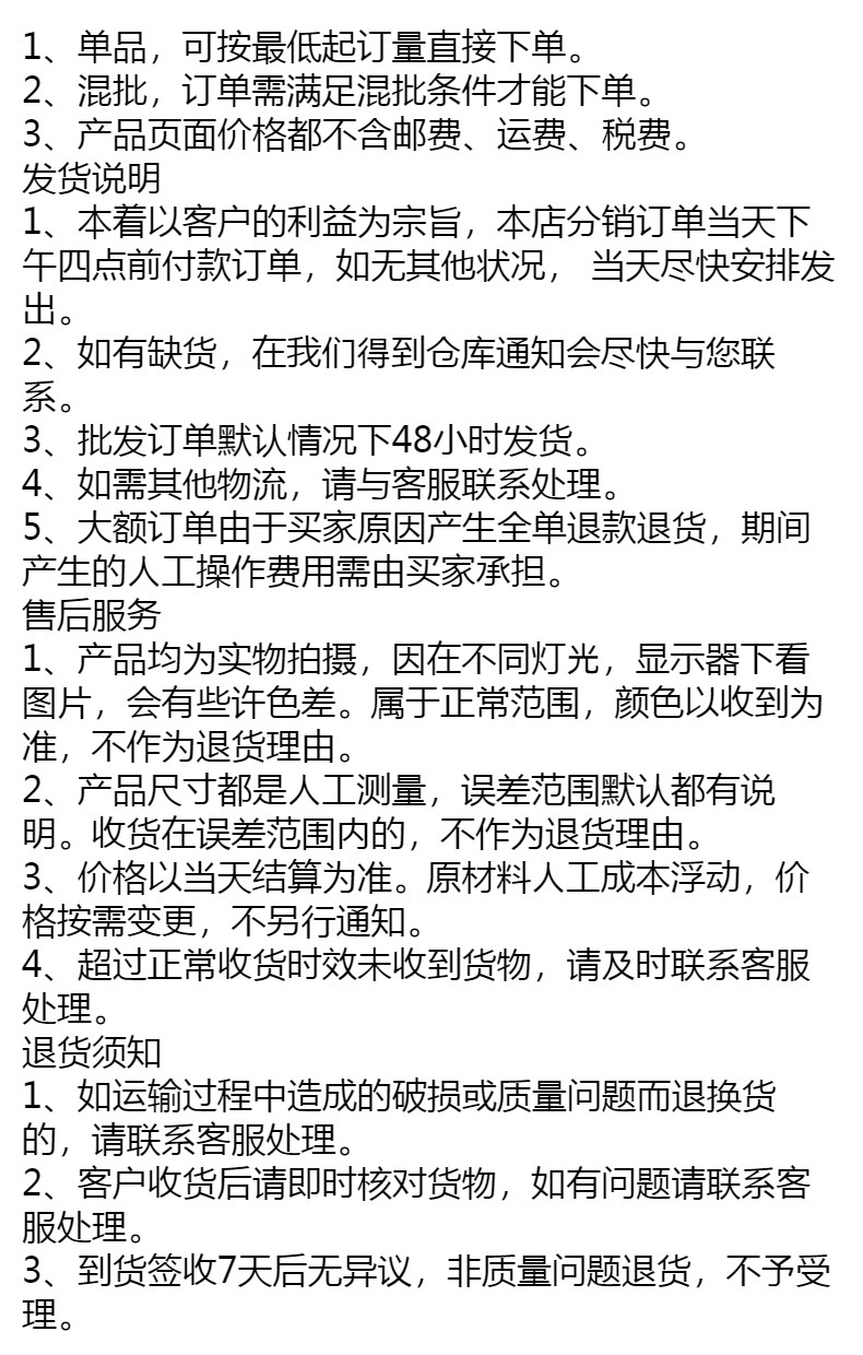 1688온라인 사이트에서 검색된 상품입니다. 알리타플에서는 상품검색/현지구매(구매대행)/국제배송 업무만 제공해드립니다. 해당 상품의 품질 및 상태에 대해서는 확인해 드릴 수 없고 해당 물건이 입고가 된 후에 검수과정을 거쳐야 확인이 가능합니다.