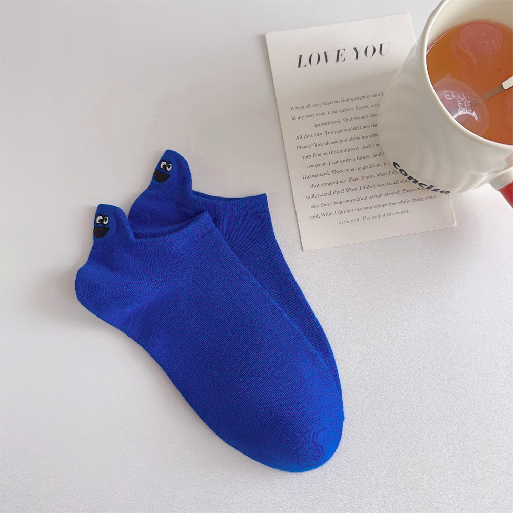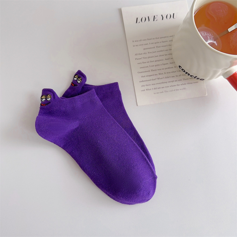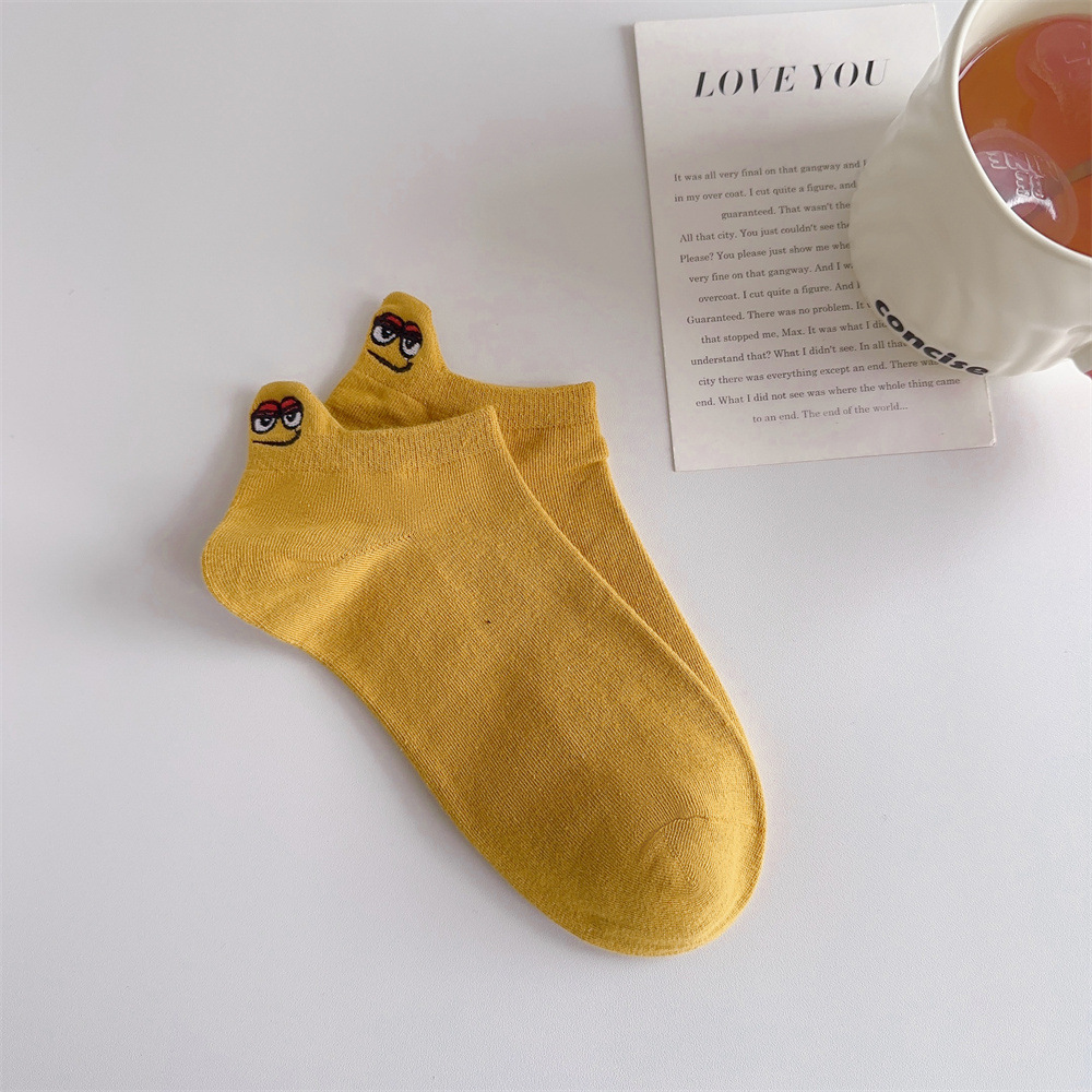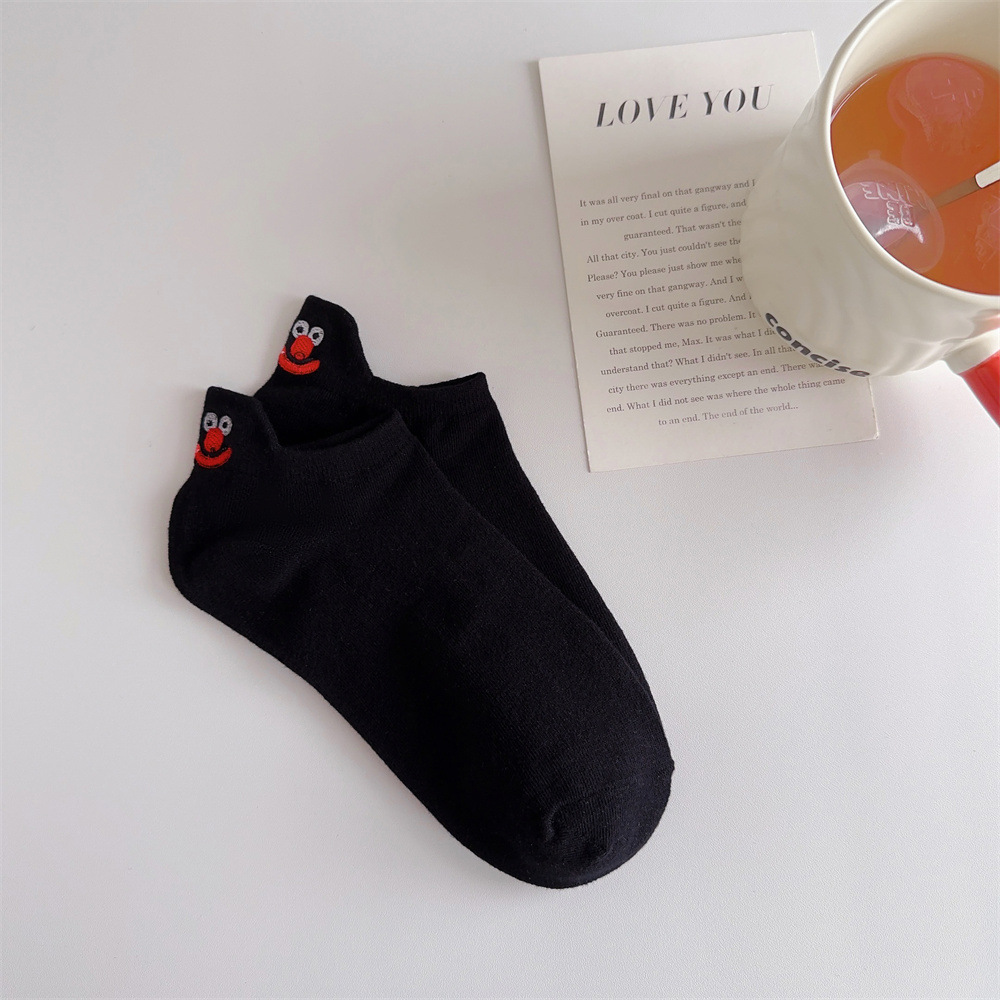 春夏卡通情侣船袜后跟搞怪表情包短袜潮流网红刺绣笑脸女袜子