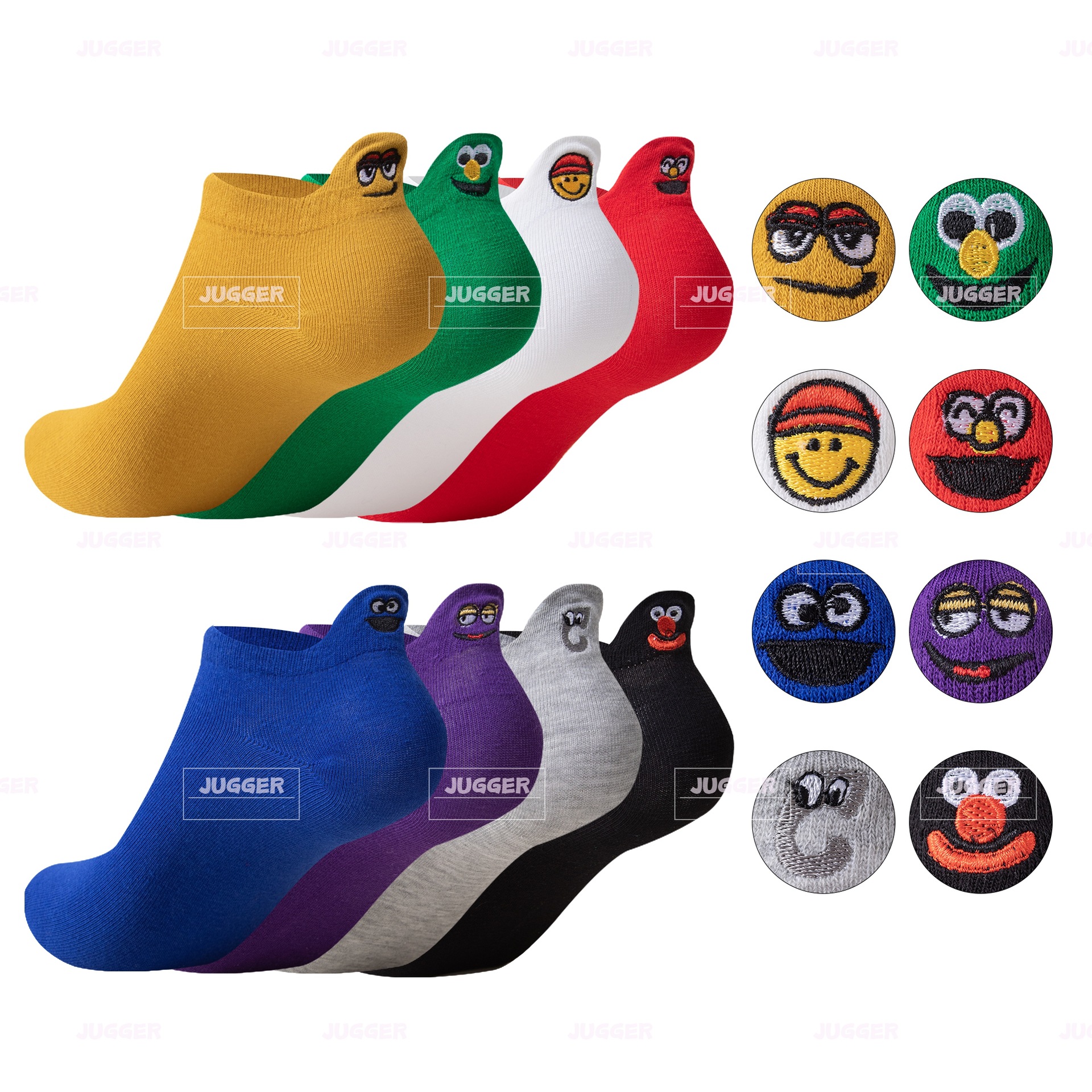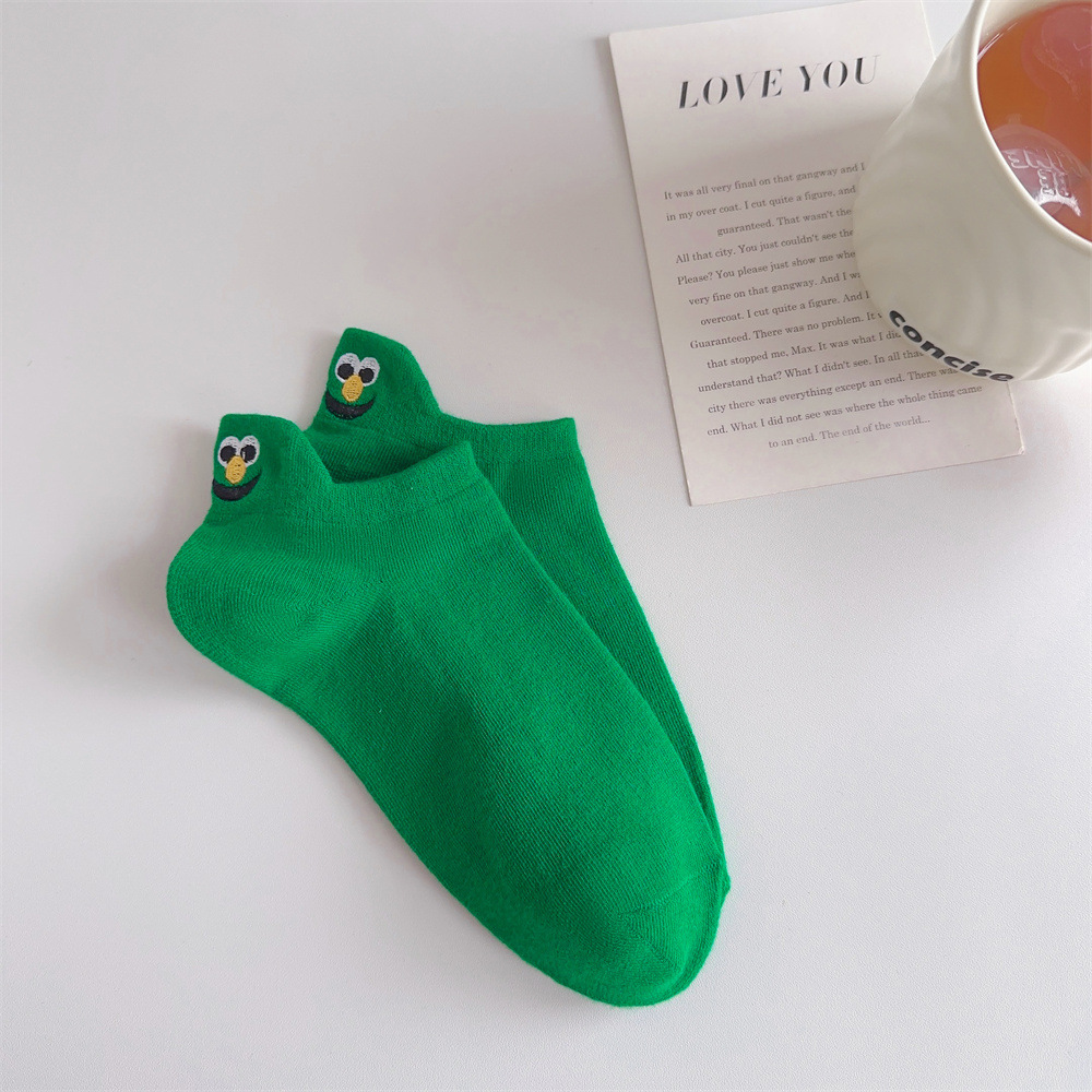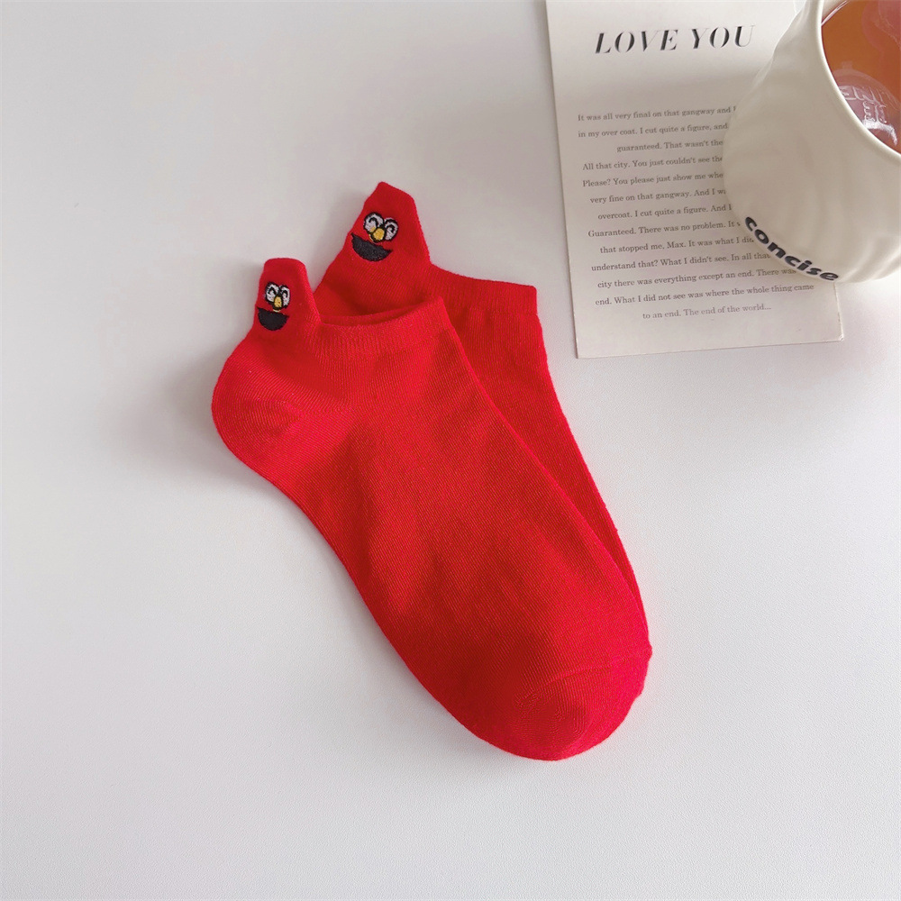 春夏卡通情侣船袜后跟搞怪表情包短袜潮流网红刺绣笑脸女袜子