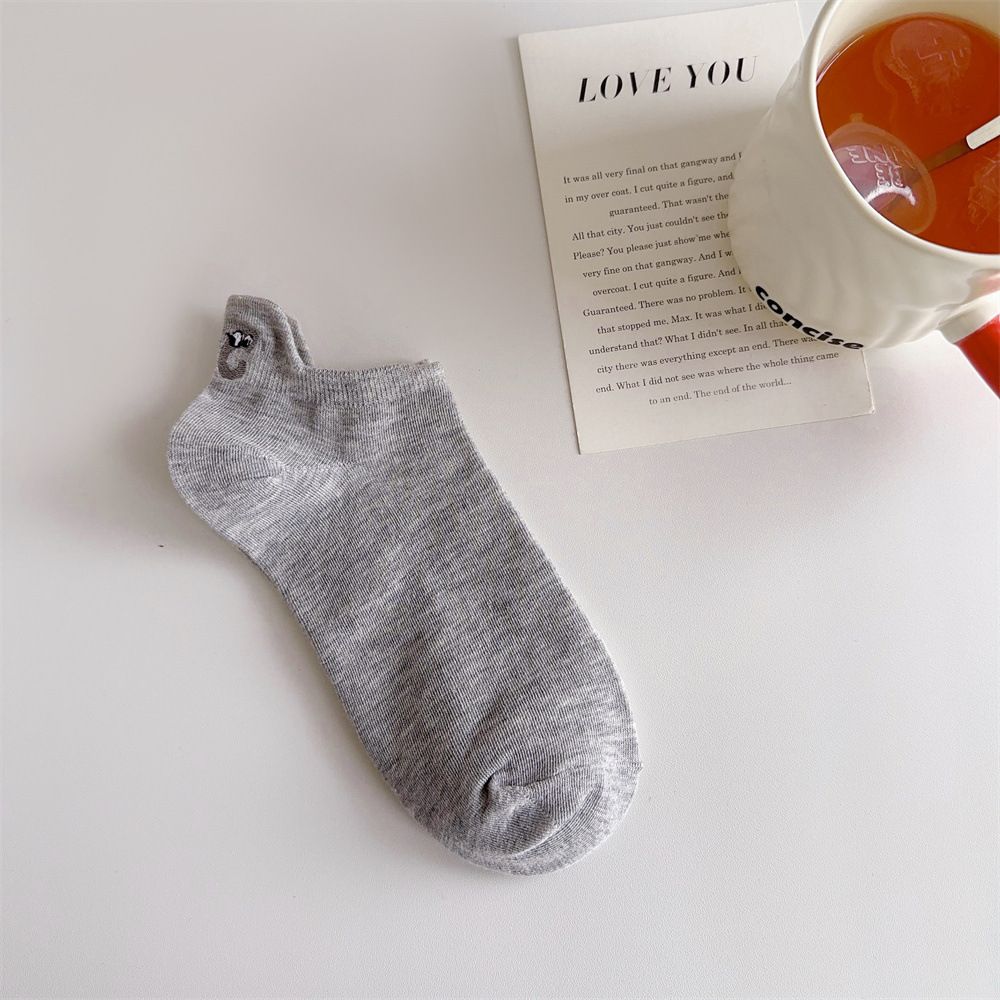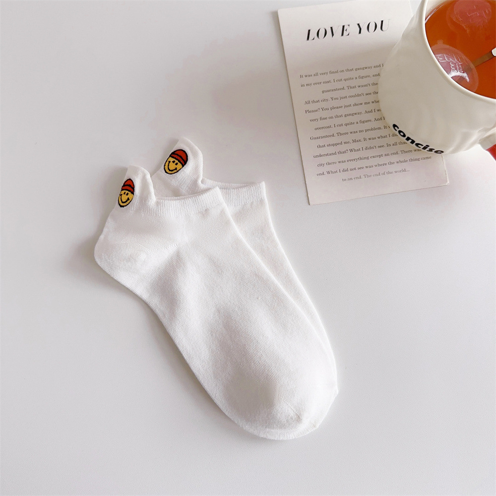 春夏刺绣女袜学院风后跟表情不掉跟棉袜女士船袜隐形袜百搭袜子