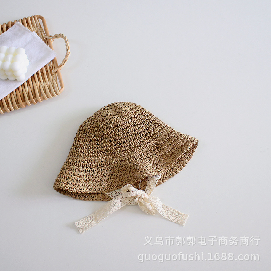 어린이를위한 여름 신선한 통기성 밀짚 모자 사이버 연예인 아기 소녀 레이스 그늘 모자 유행스토어 가기
