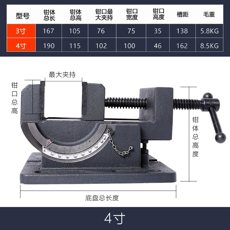 Tailisen 틸팅 가이드 로드형 각도 플랫 클램프 틸팅 드릴링 머신 벤치 바이스 3 인치 4 인치 벤치 드릴 고정물 벤치 클램프