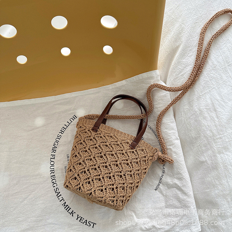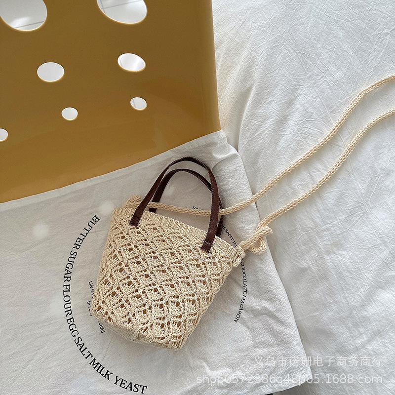 2023 봄과 여름 새로운 한국 스타일 어린이 크로스 바디 백 중공 짠 핸드백 소녀의 여행 오목 숄더 백