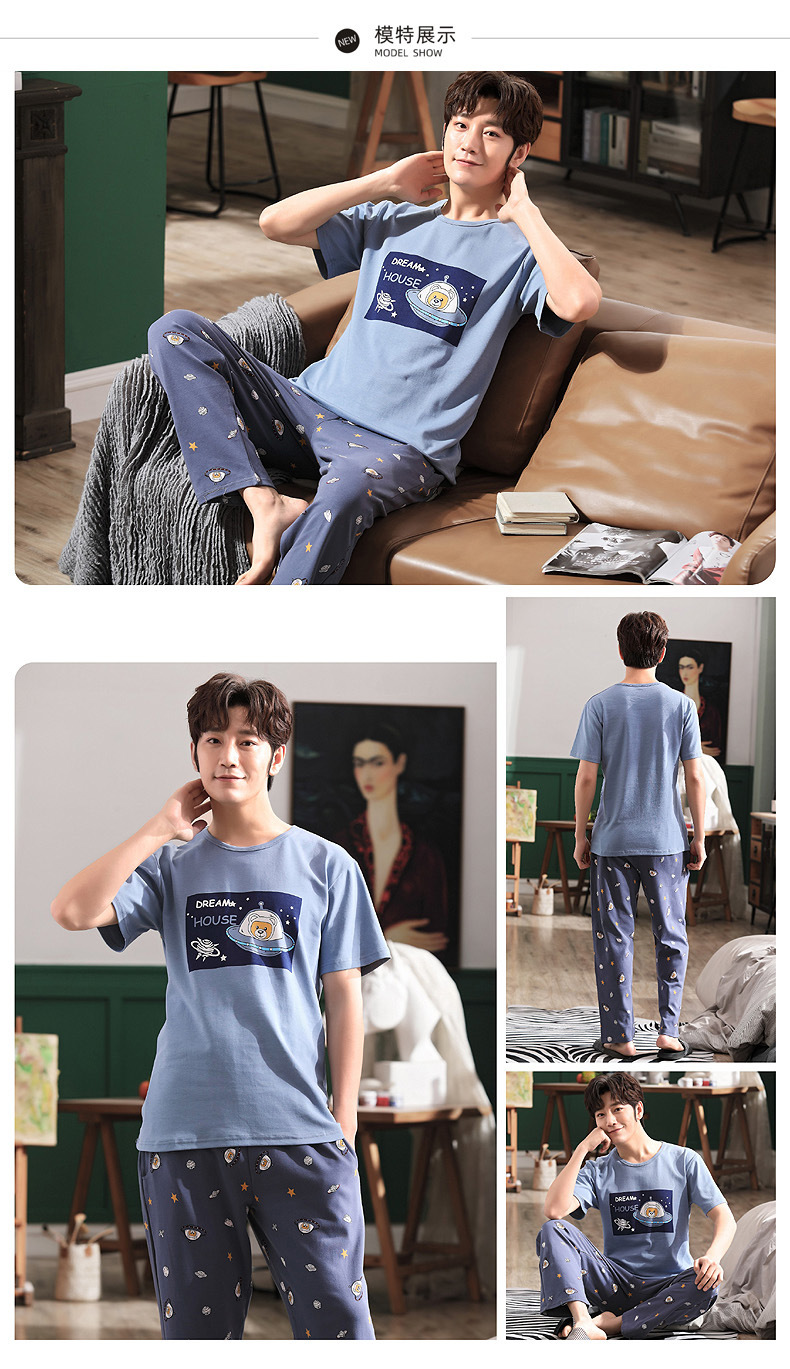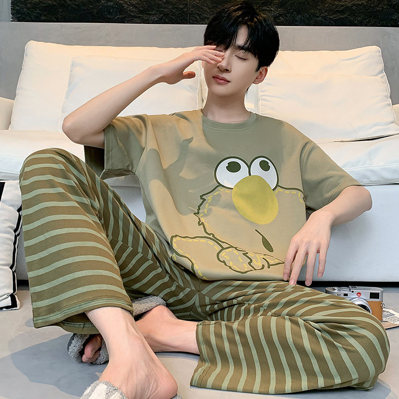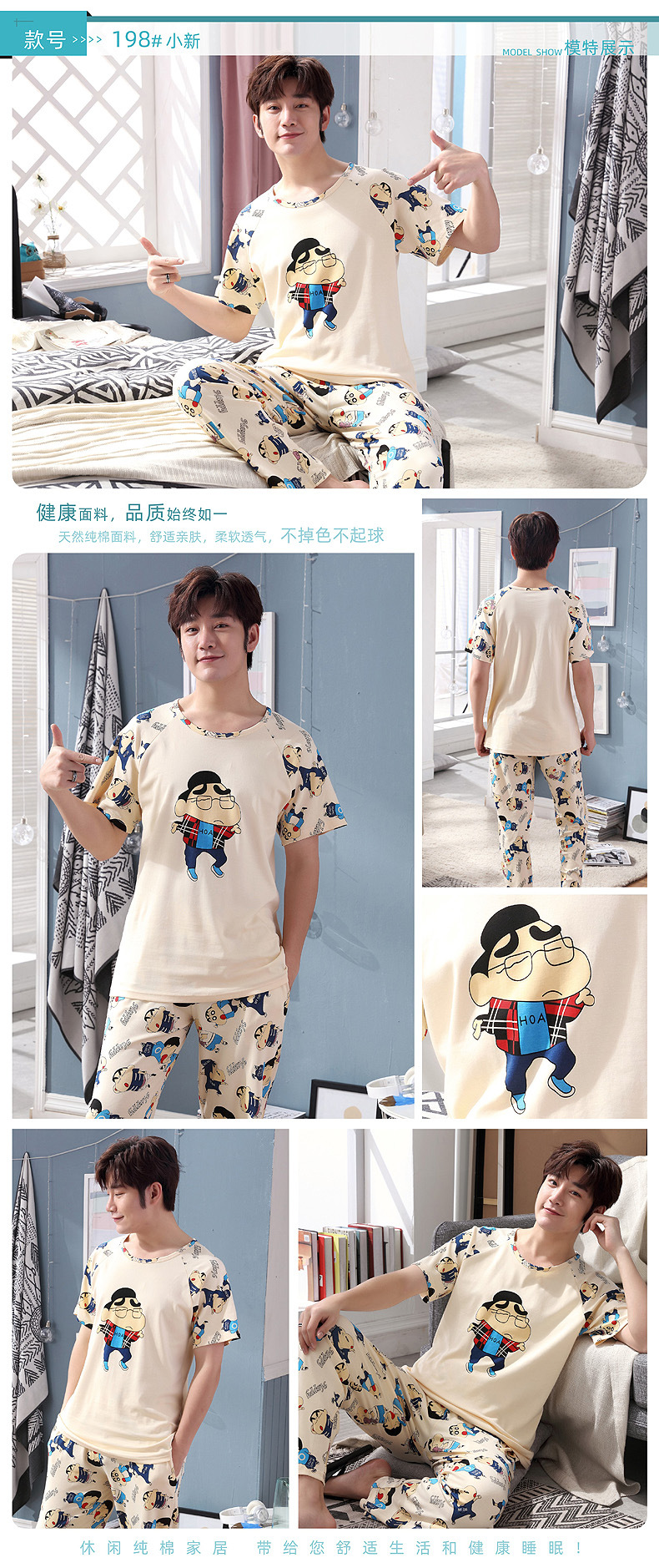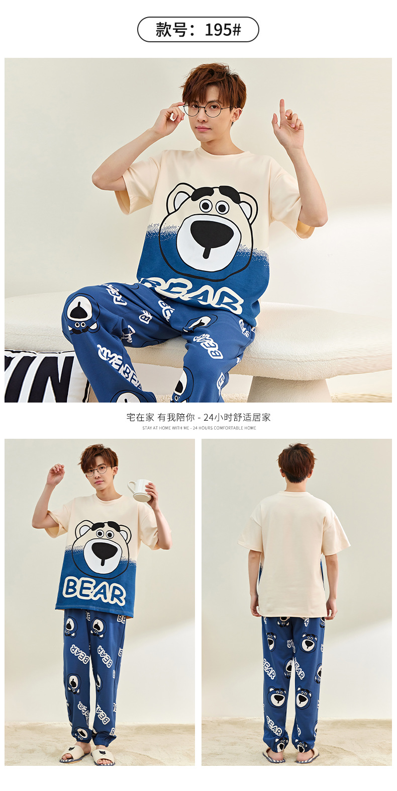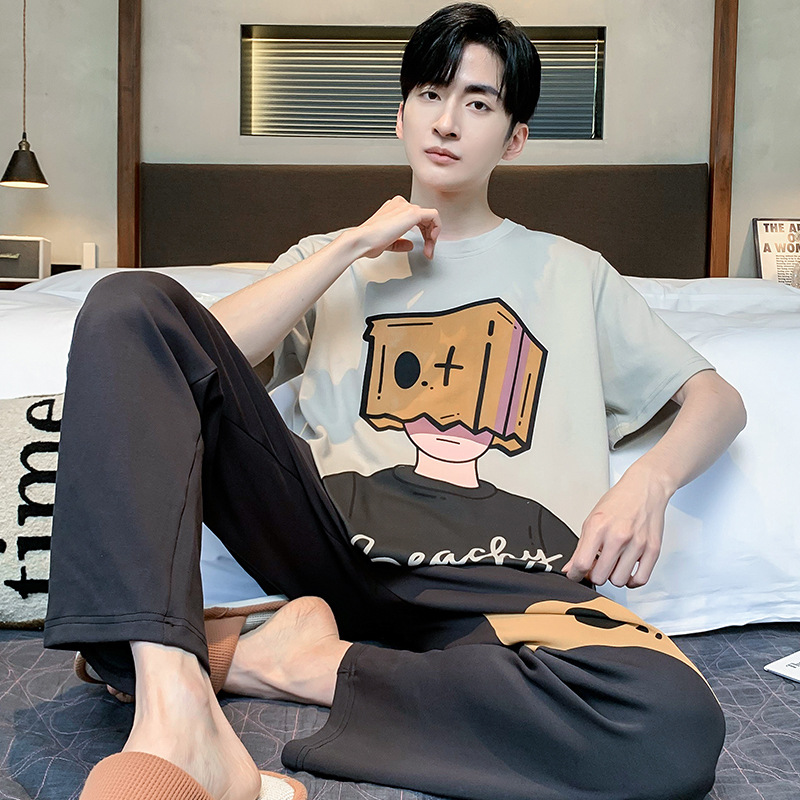 남자의 잠옷 여름 면 반팔 바지 만화 십대 남자의 면 가정 옷 학생 세트 머리 도매스토어 가기