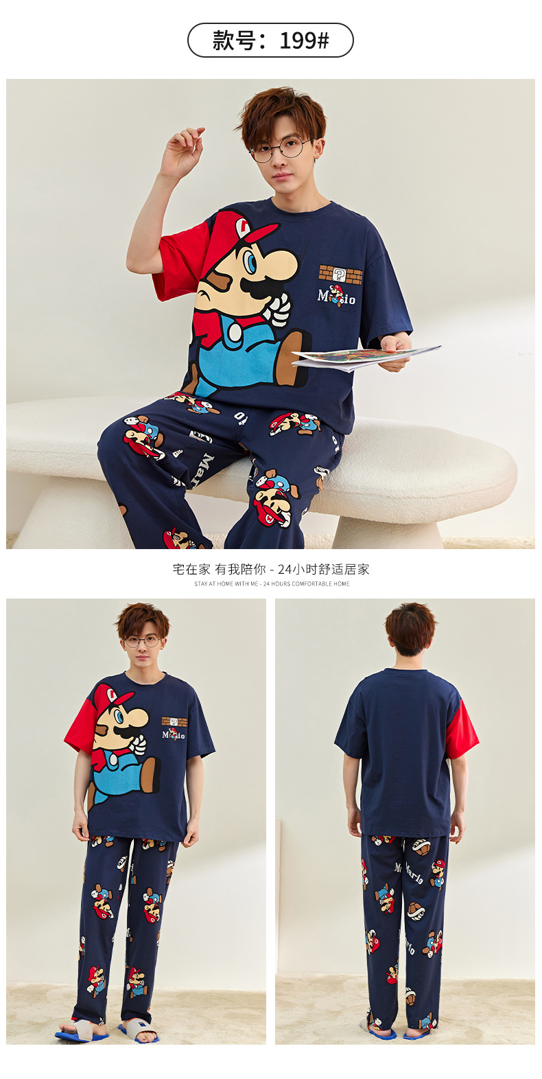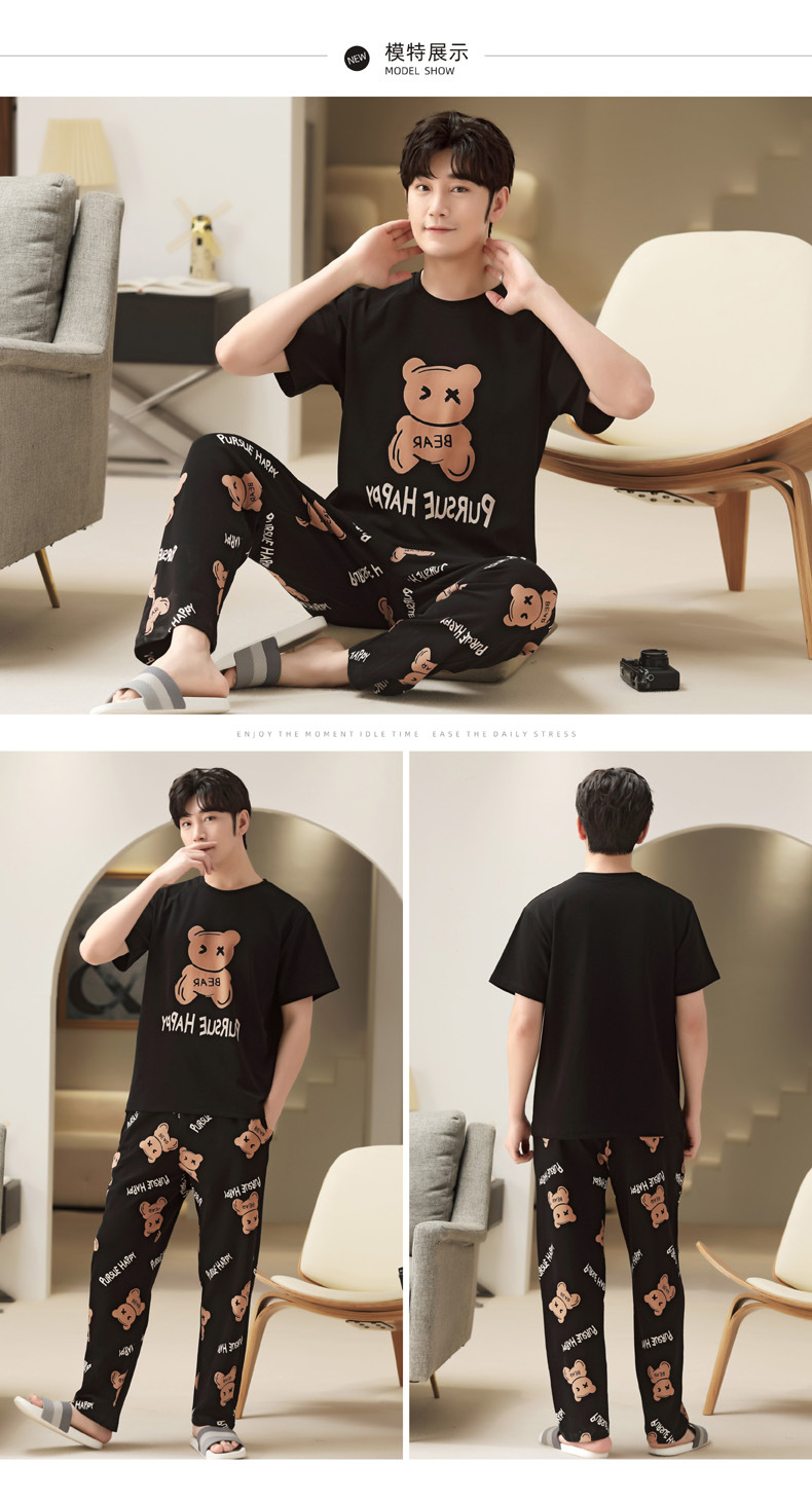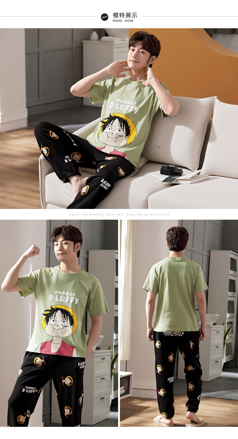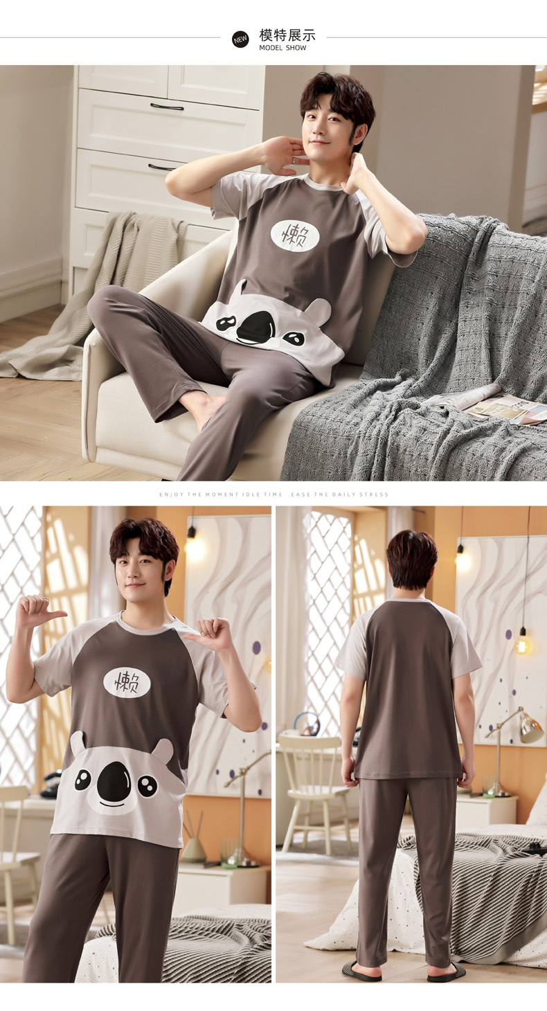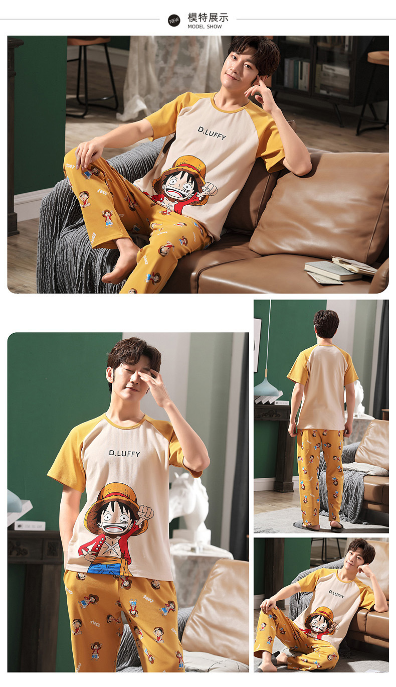 남자의 잠옷 여름 면 반팔 바지 만화 십대 남자의 면 가정 옷 학생 세트 머리 도매스토어 가기