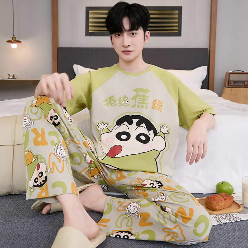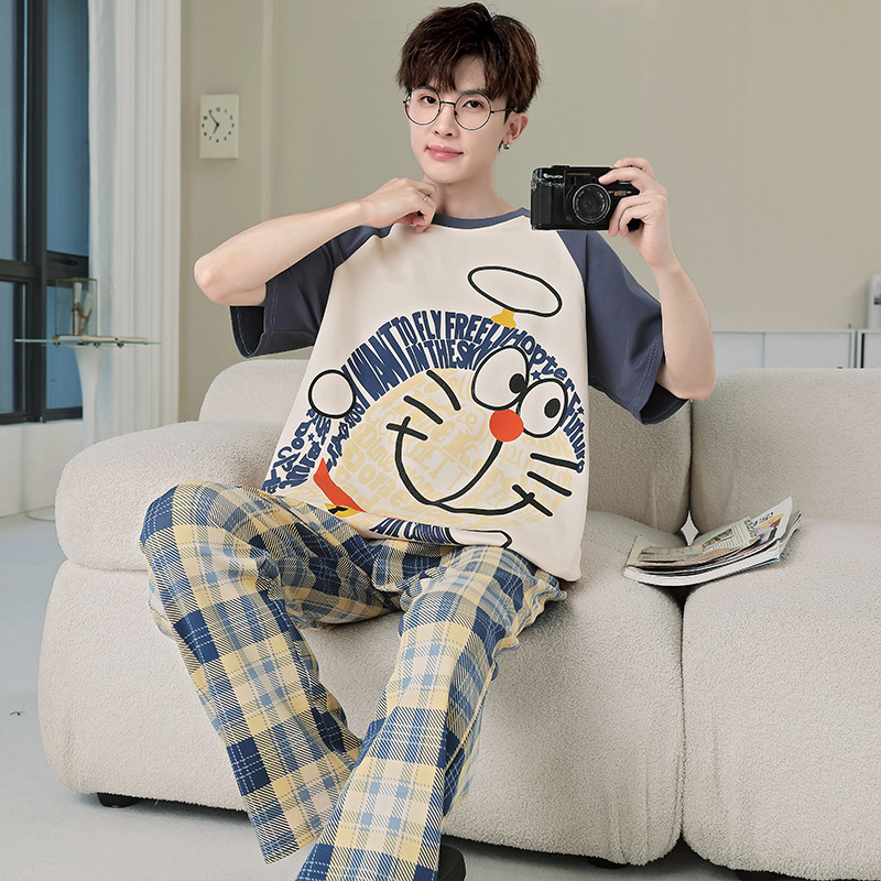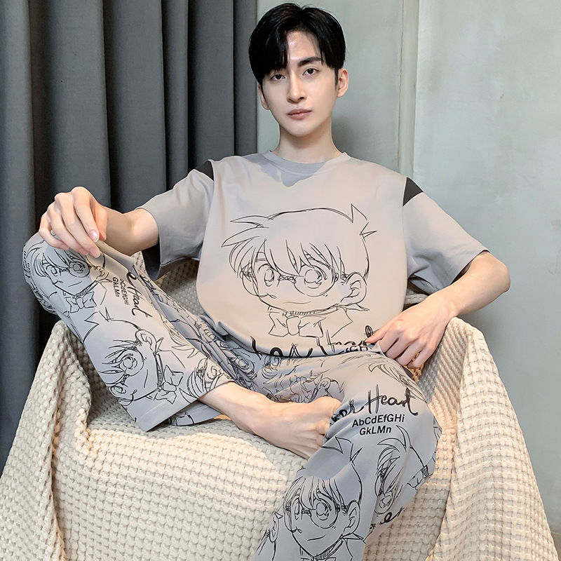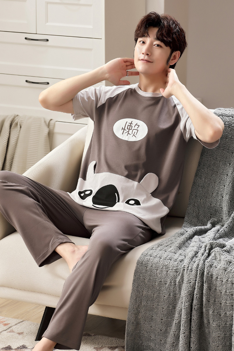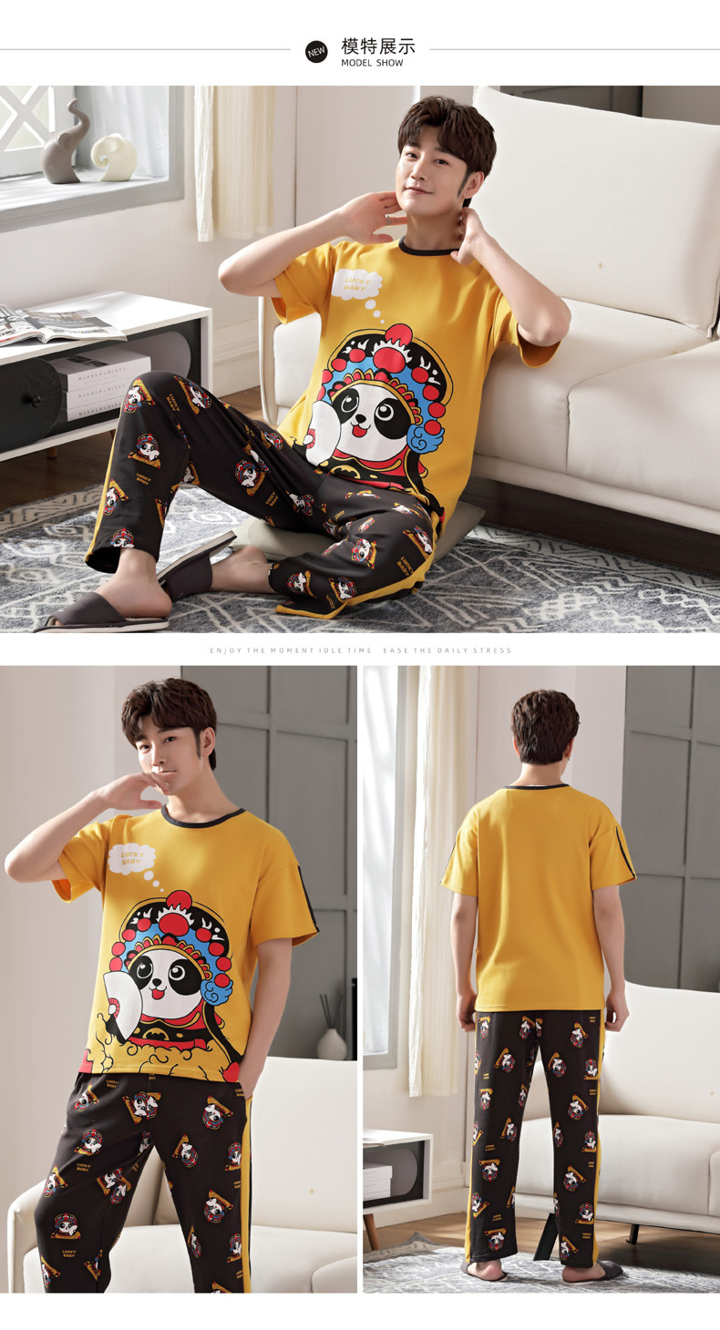 남자의 잠옷 여름 면 반팔 바지 만화 십대 남자의 면 가정 옷 학생 세트 머리 도매스토어 가기