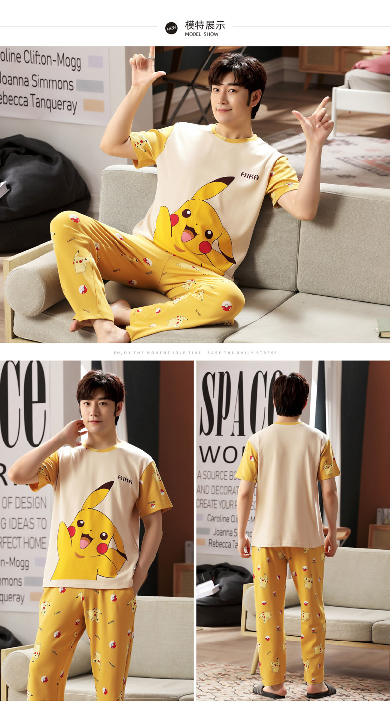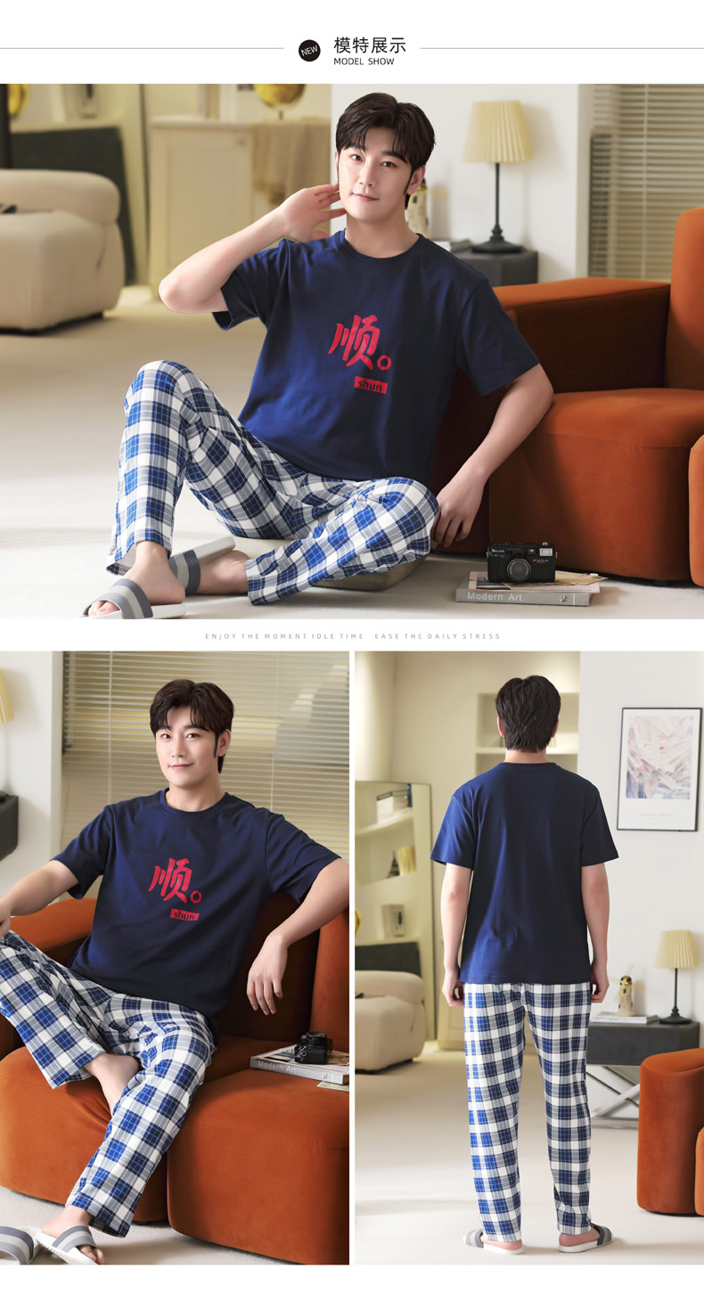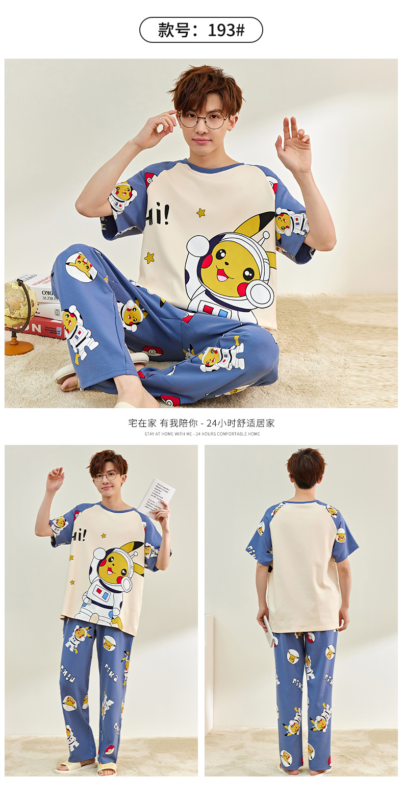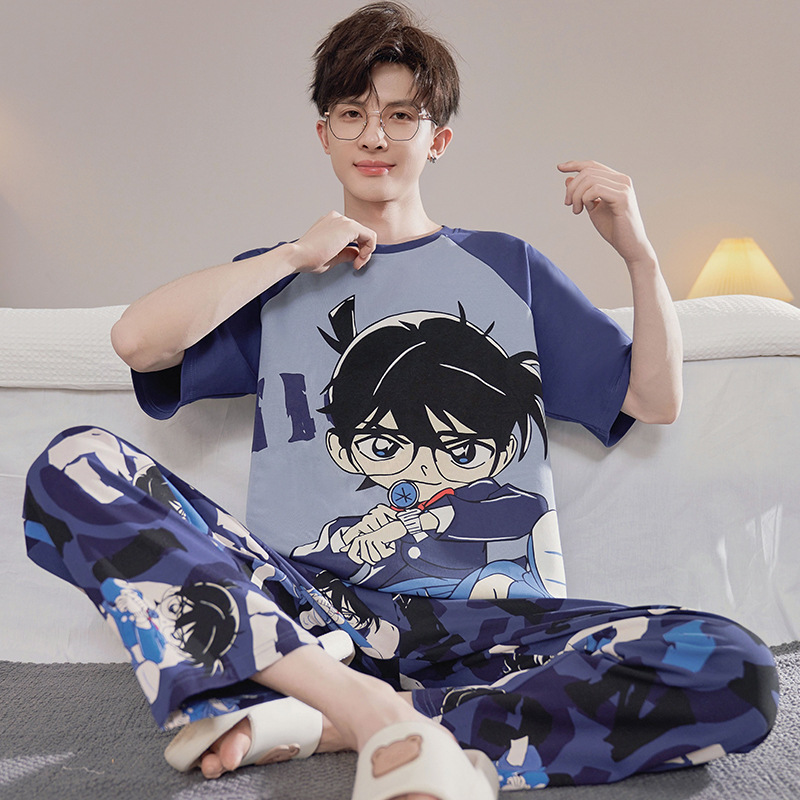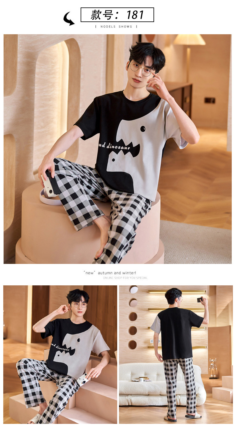 남자의 잠옷 여름 면 반팔 바지 만화 십대 남자의 면 가정 옷 학생 세트 머리 도매스토어 가기