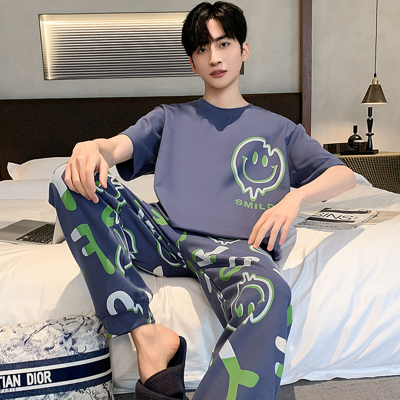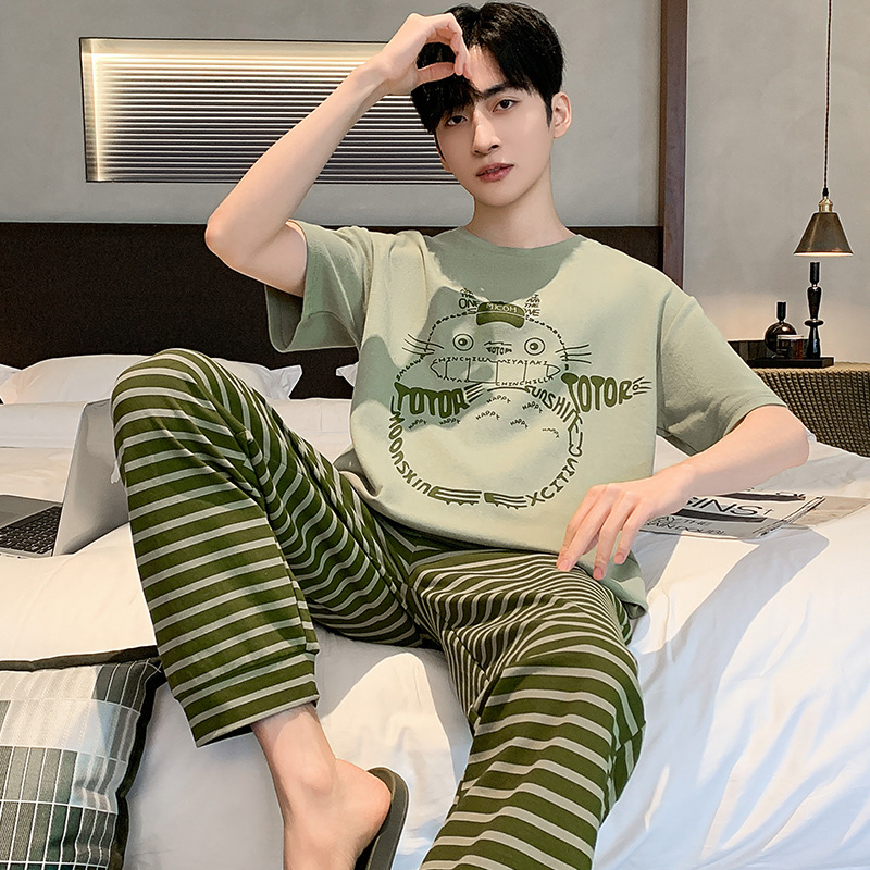 남자의 잠옷 여름 면 반팔 바지 만화 십대 남자의 면 가정 옷 학생 세트 머리 도매