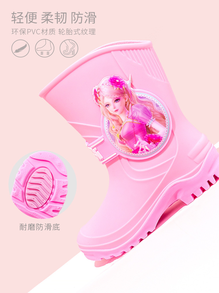 Ye Luoli 어린이 장화 여성용 귀여운 만화 공주 미끄럼 방지 방수 중간 송아지 하이 탑 PVC 사계절 유아