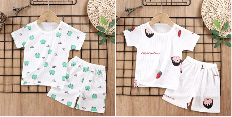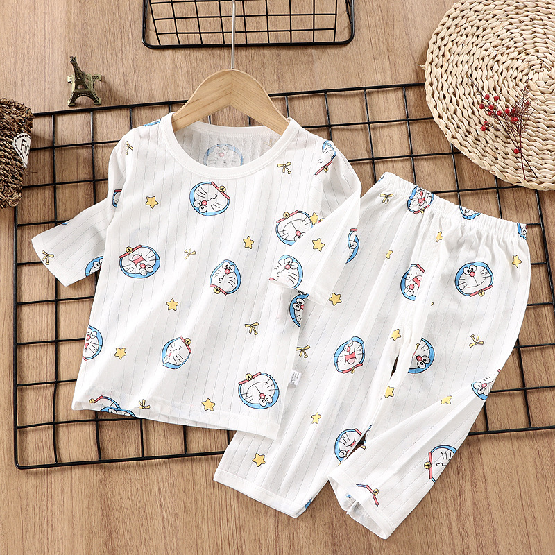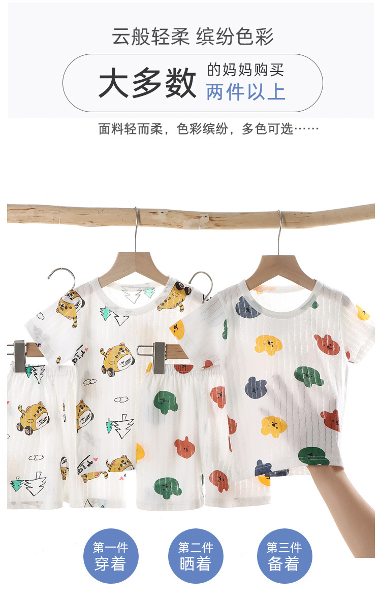 어린이 순면 가정 의류 소년과 소녀 반팔 반바지 잠옷 세트 아기 여름 얇은 만화 에어컨 옷스토어 가기
