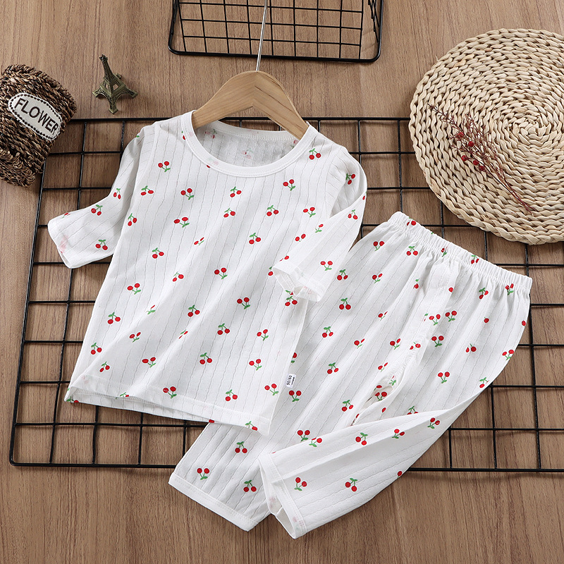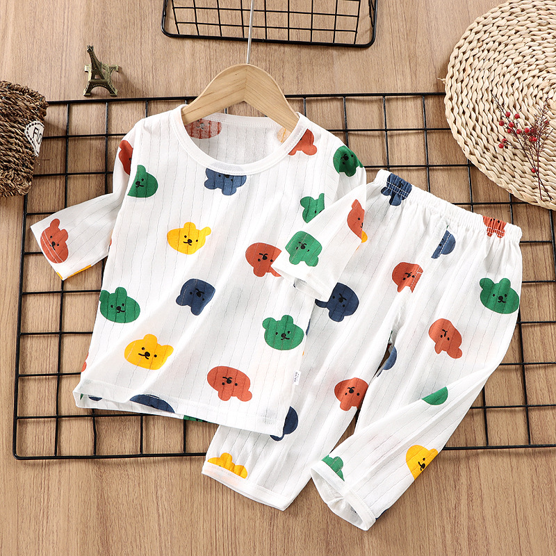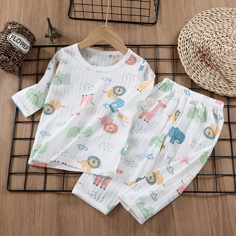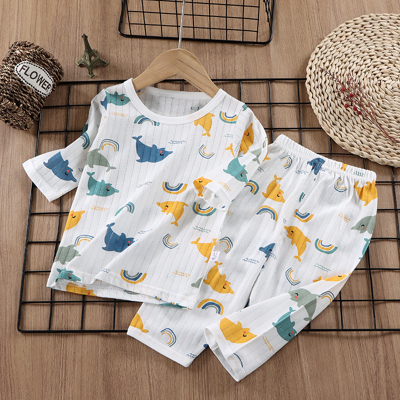 어린이 순면 가정 의류 소년과 소녀 반팔 반바지 잠옷 세트 아기 여름 얇은 만화 에어컨 옷