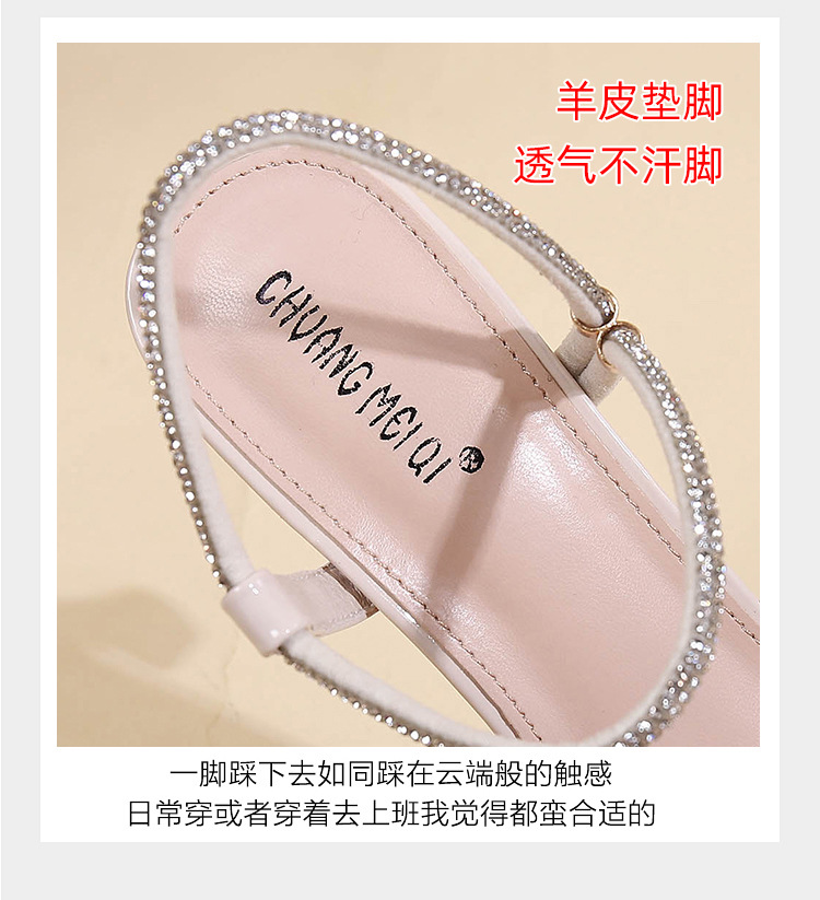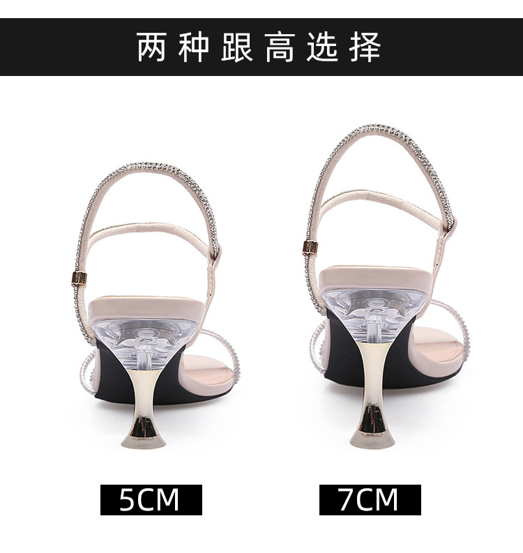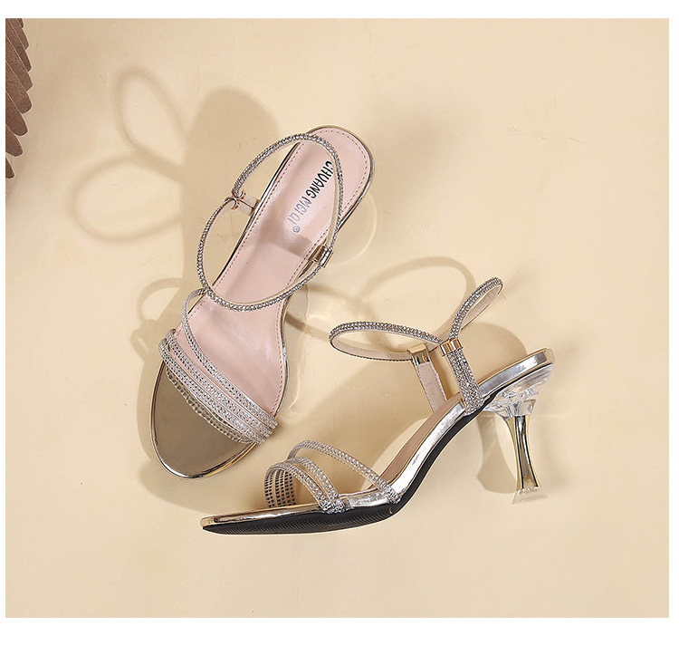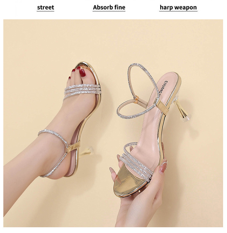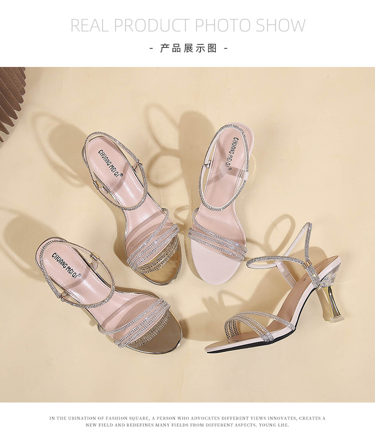 새로운 여름 투웨어 Exp 핑거 컬러 다이아몬드 원 워드 벨트 패션 크리스탈 미드 힐 여성용 샌들 페어리 스타일