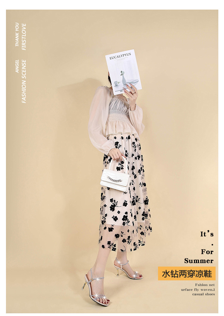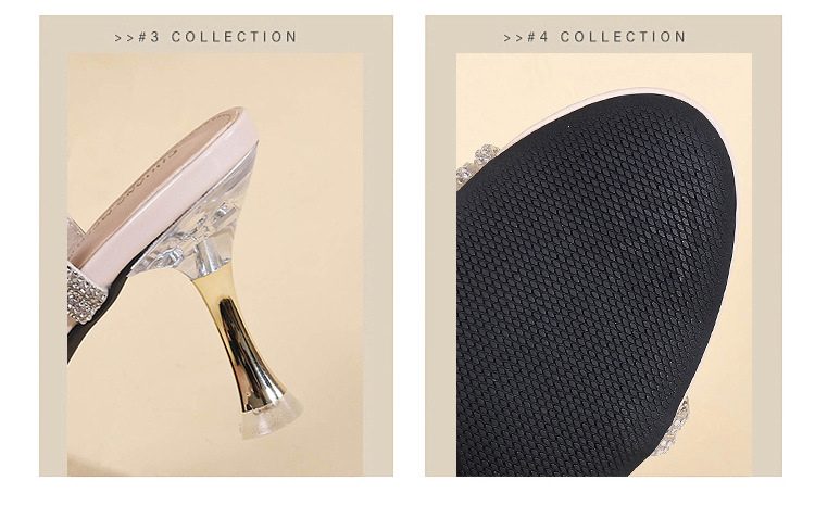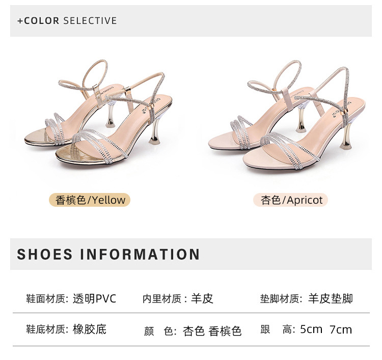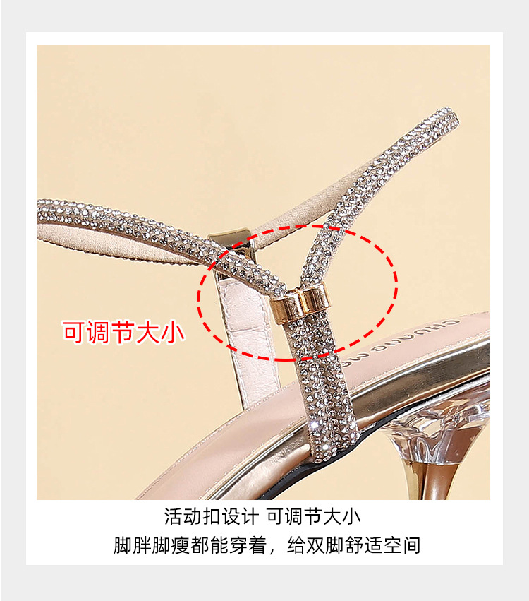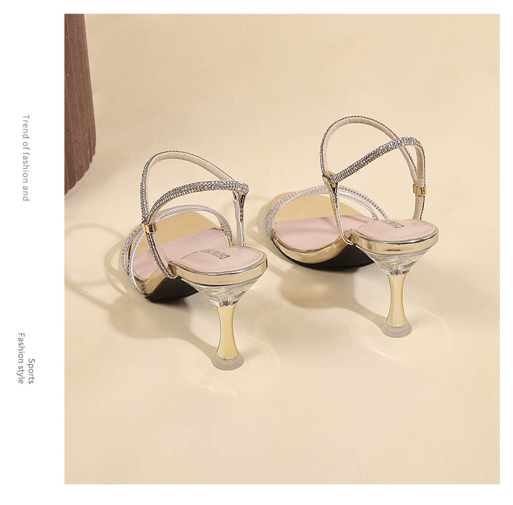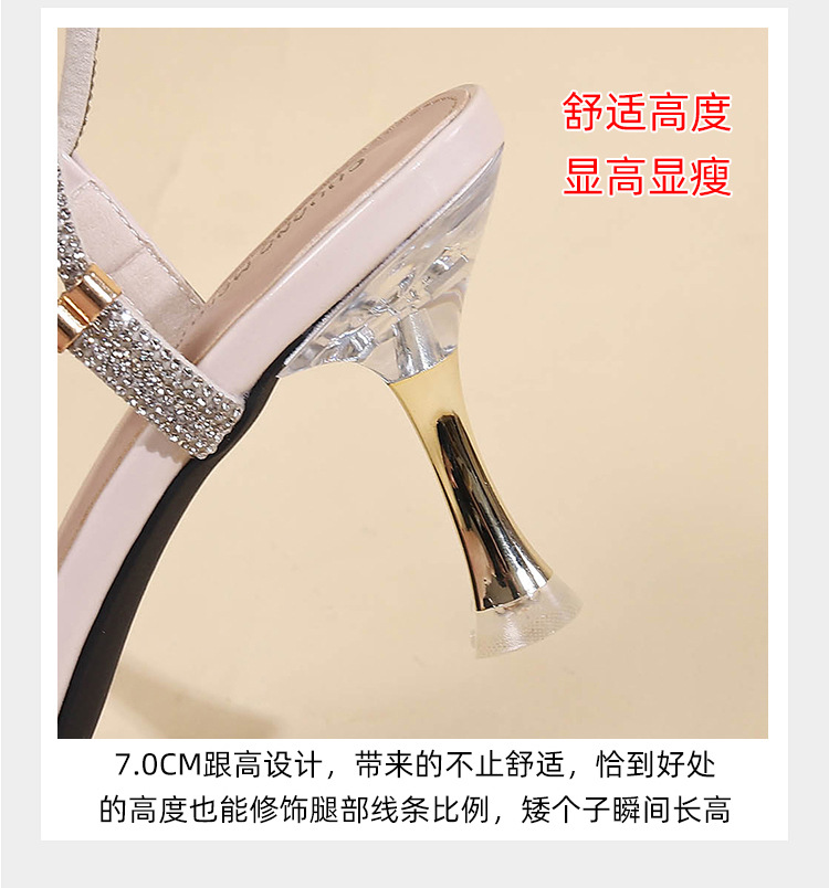 새로운 여름 투웨어 Exp 핑거 컬러 다이아몬드 원 워드 벨트 패션 크리스탈 미드 힐 여성용 샌들 페어리 스타일