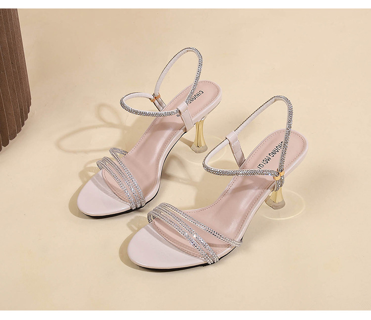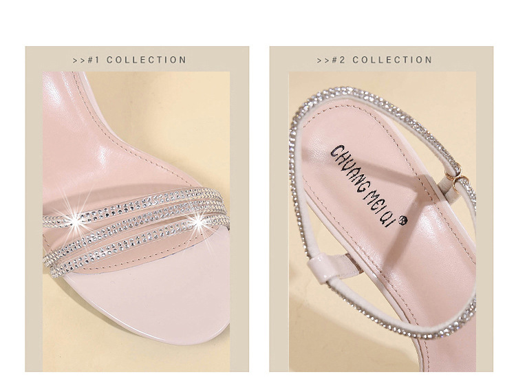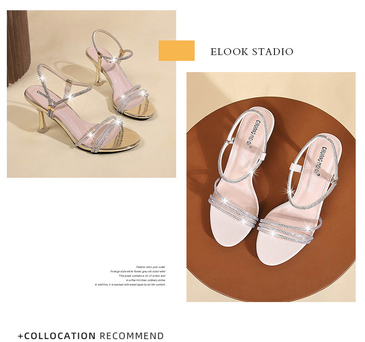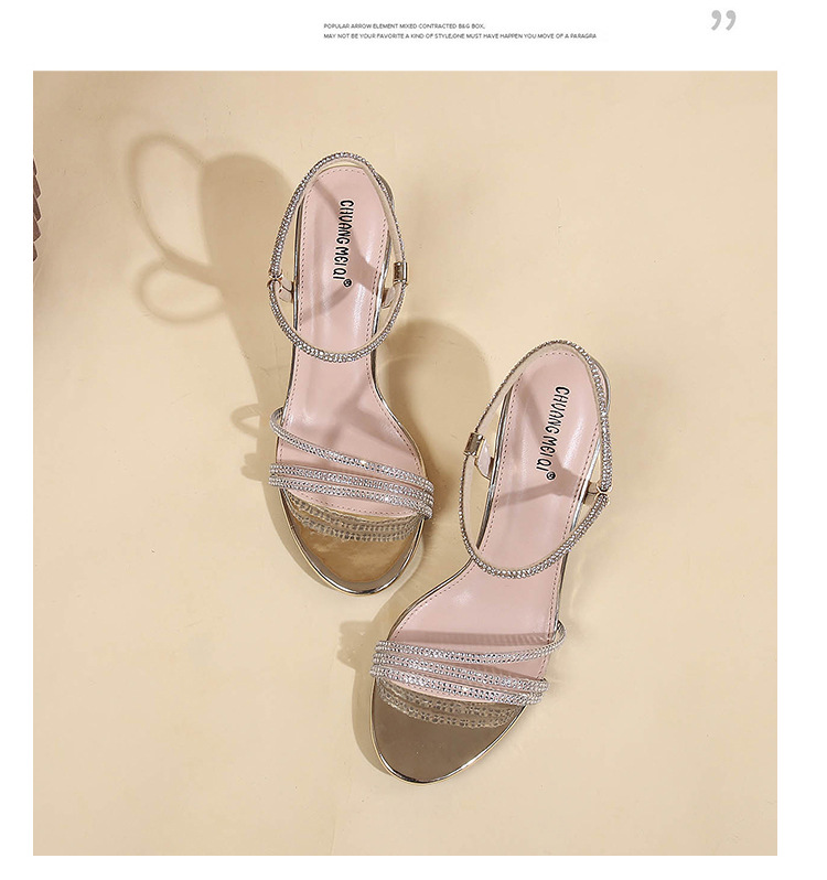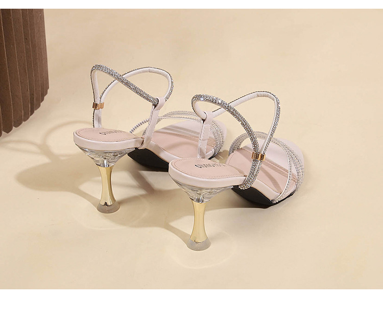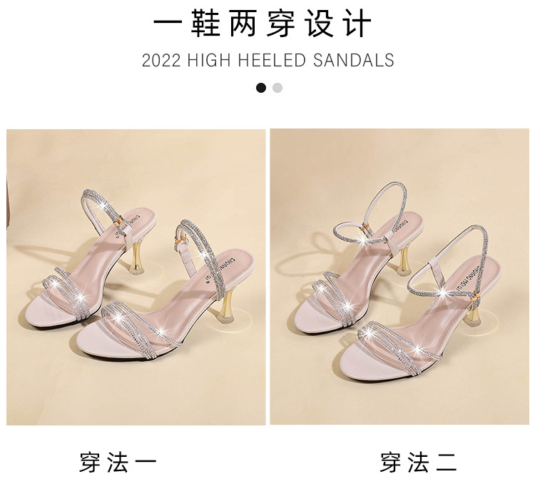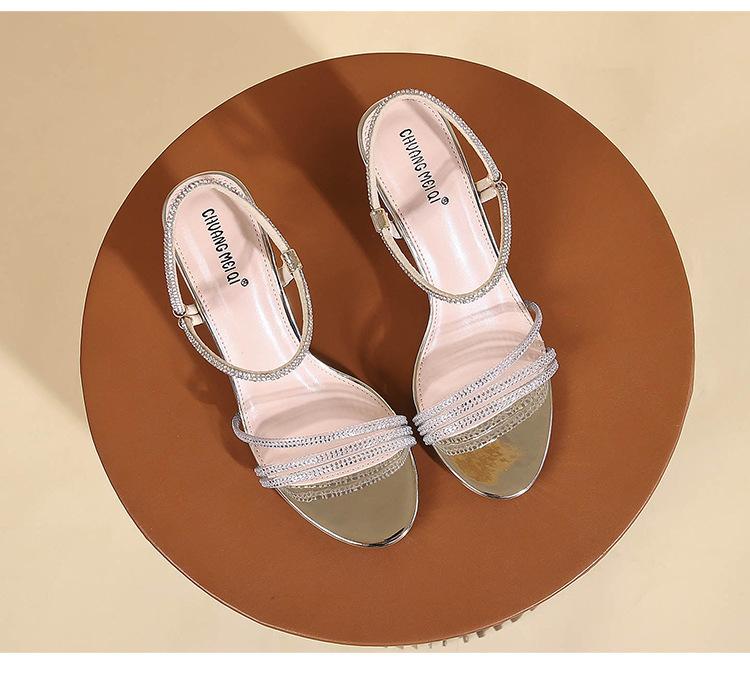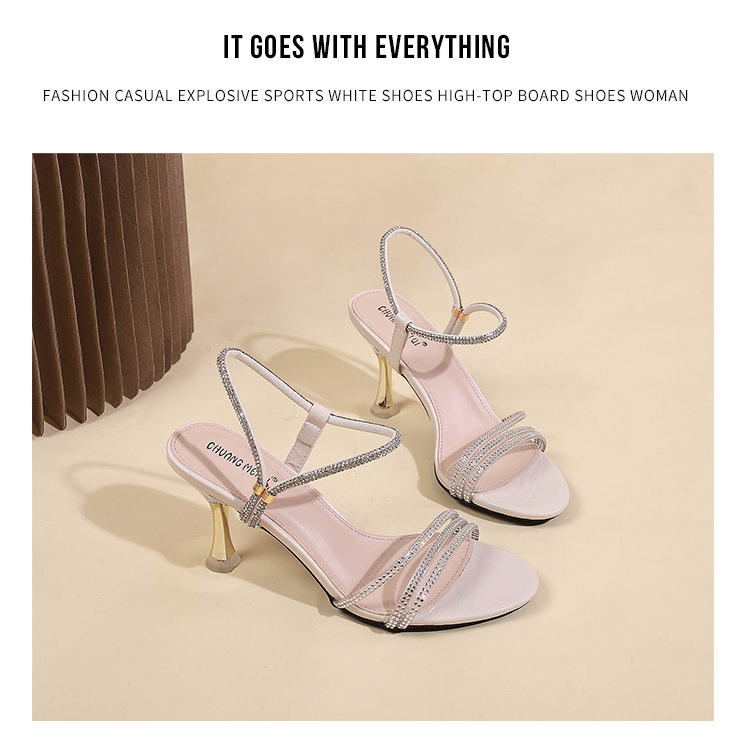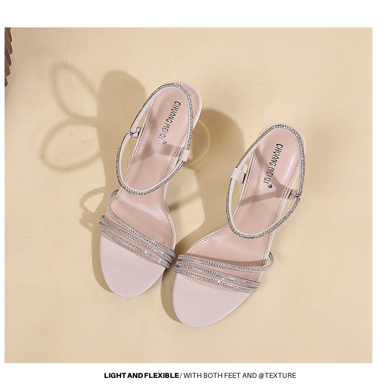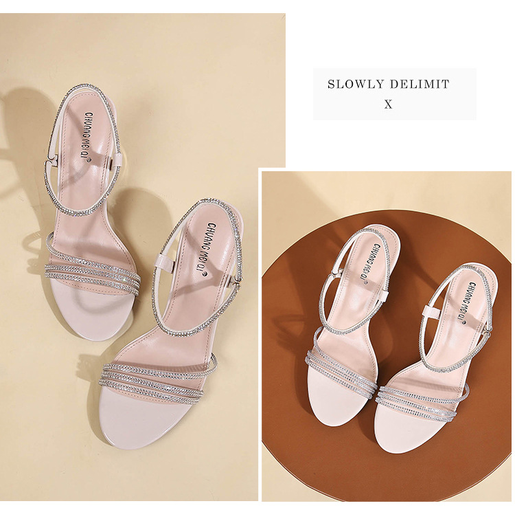 새로운 여름 투웨어 Exp 핑거 컬러 다이아몬드 원 워드 벨트 패션 크리스탈 미드 힐 여성용 샌들 페어리 스타일스토어 가기