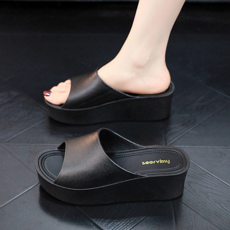 세련된 캐주얼 두꺼운 밑창 플라스틱 샌들과 슬리퍼 여성용 욕실 미끄럼 방지 웨지 슬리퍼 하이힐 두꺼운 밑창 여성용 신발스토어 가기