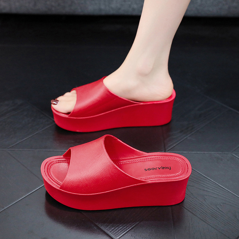 세련된 캐주얼 두꺼운 밑창 플라스틱 샌들과 슬리퍼 여성용 욕실 미끄럼 방지 웨지 슬리퍼 하이힐 두꺼운 밑창 여성용 신발