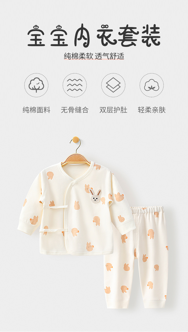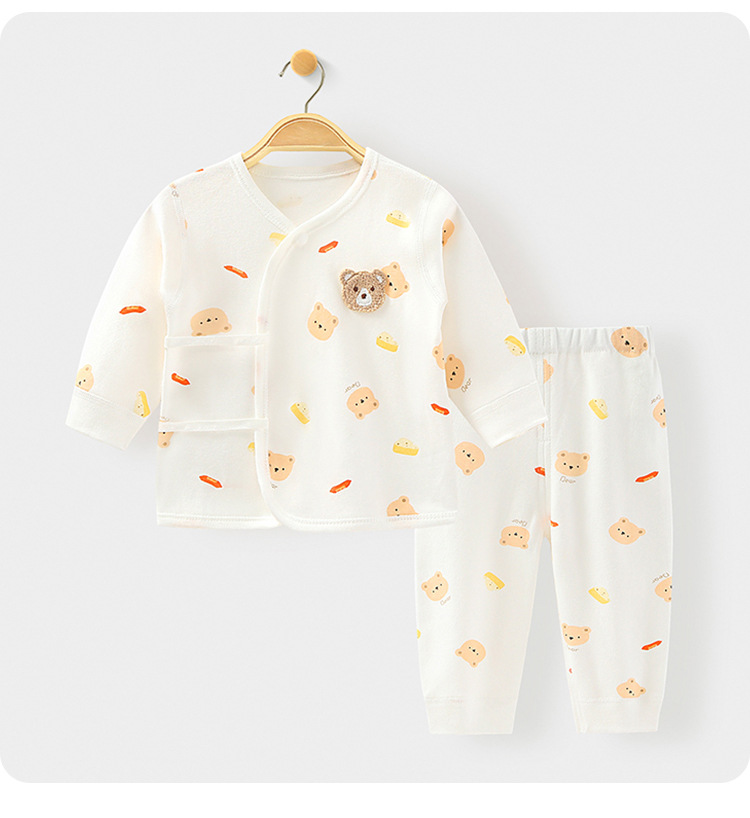 아기 잠옷 속옷 순면 봄과 가을 높은 허리 배 보호 신생아 분할 세트 아기 가을 옷과 바지 기본 옷스토어 가기