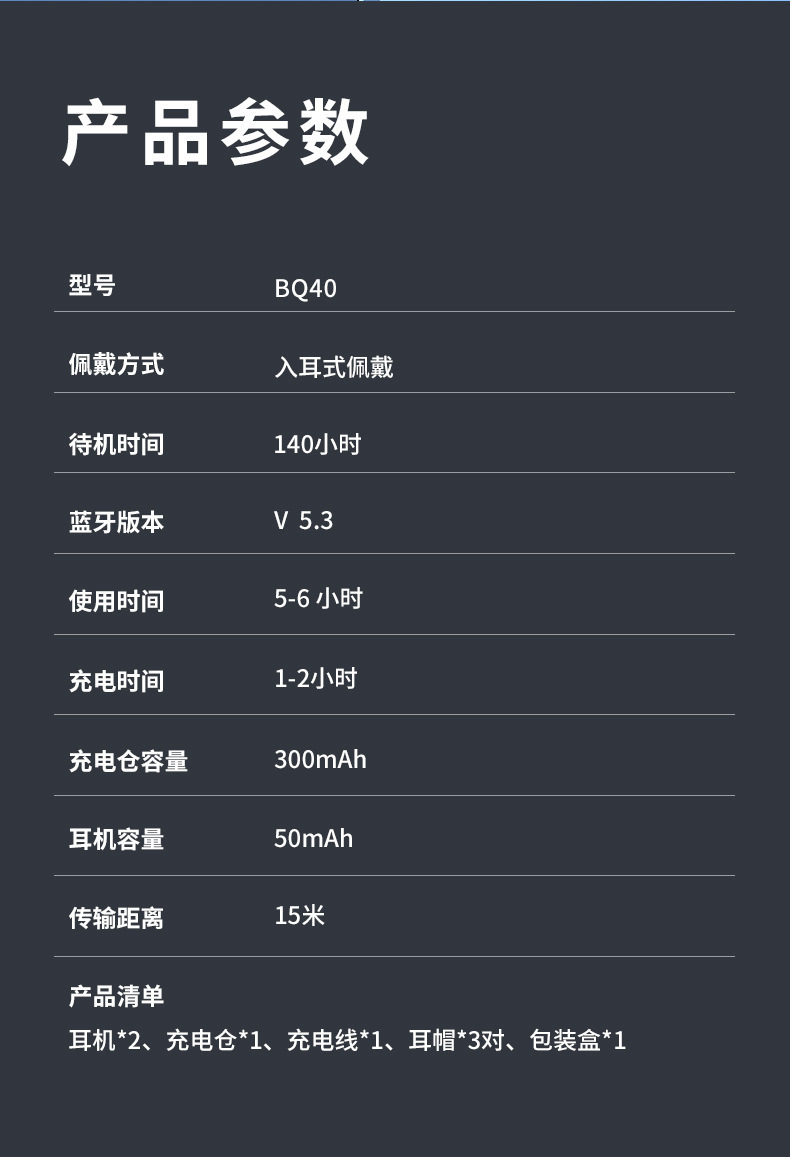 새로운 개인 모델 BQ40 무선 블루투스 헤드셋 크로스 보더 풀 아웃 디지털 디스플레이 스포츠 인 이어 TWS 블루투스 헤드셋