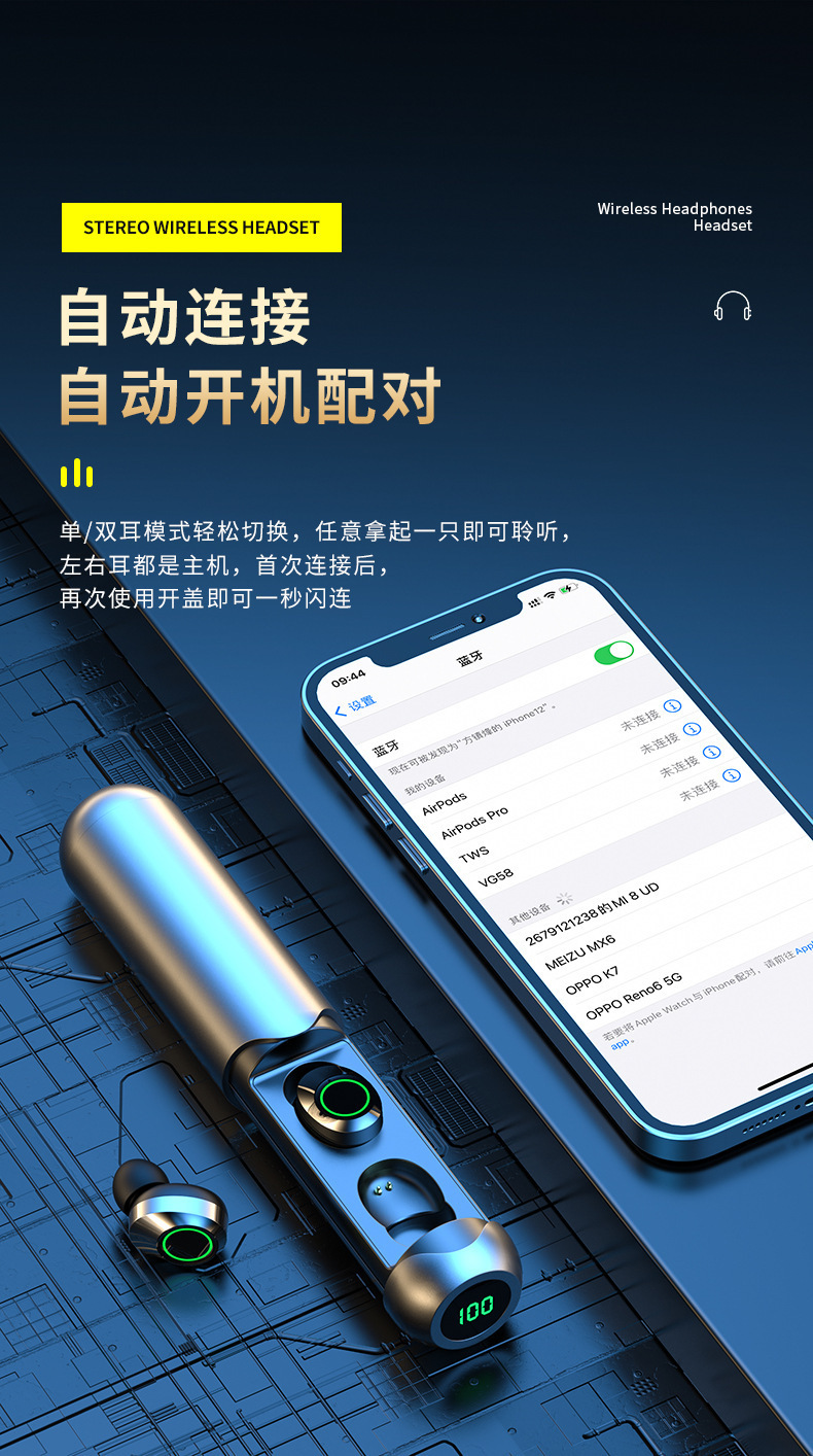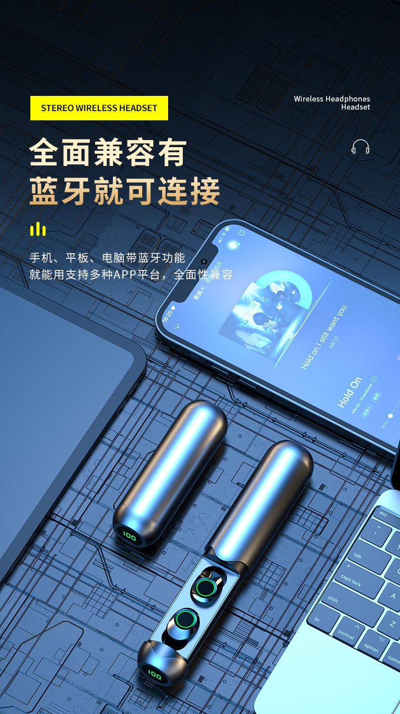 새로운 개인 모델 BQ40 무선 블루투스 헤드셋 크로스 보더 풀 아웃 디지털 디스플레이 스포츠 인 이어 TWS 블루투스 헤드셋스토어 가기
