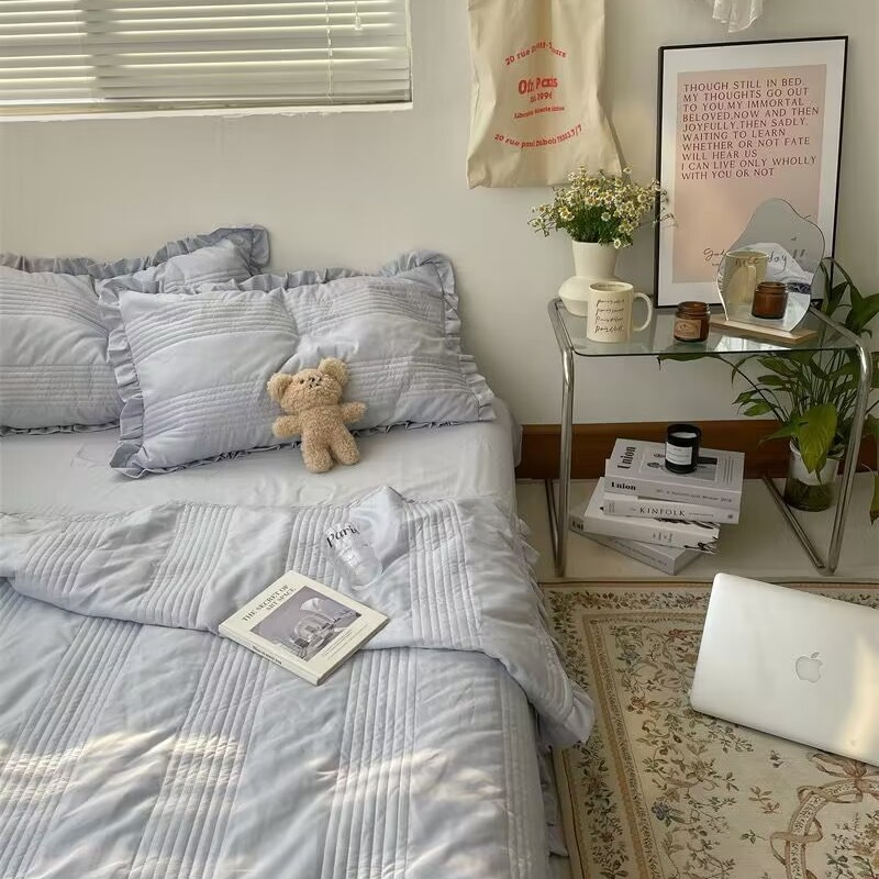 하늘이 회색이 되지 않을 것입니다! ins 블로거의 같은 스타일 솔리드 컬러 여름 이불 4피스 세트 인터넷 연예인 에어컨 이불 여름 얇은 이불스토어 가기
